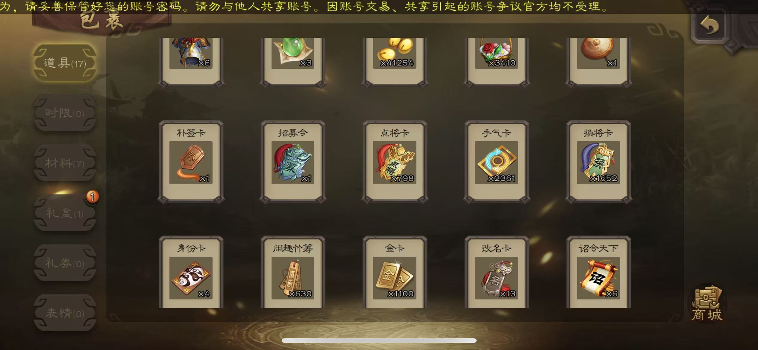 中军友诸葛亮界钟会戏子沙和尚花花神吕布神赵云三卡4300元宝带盒子