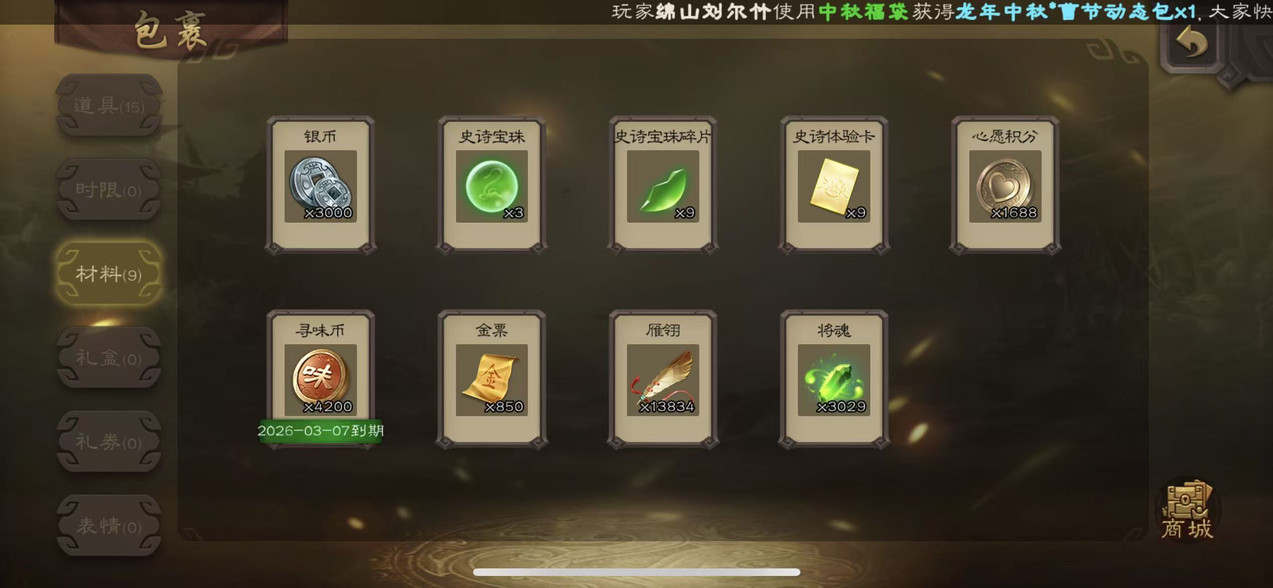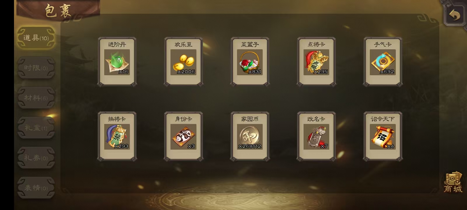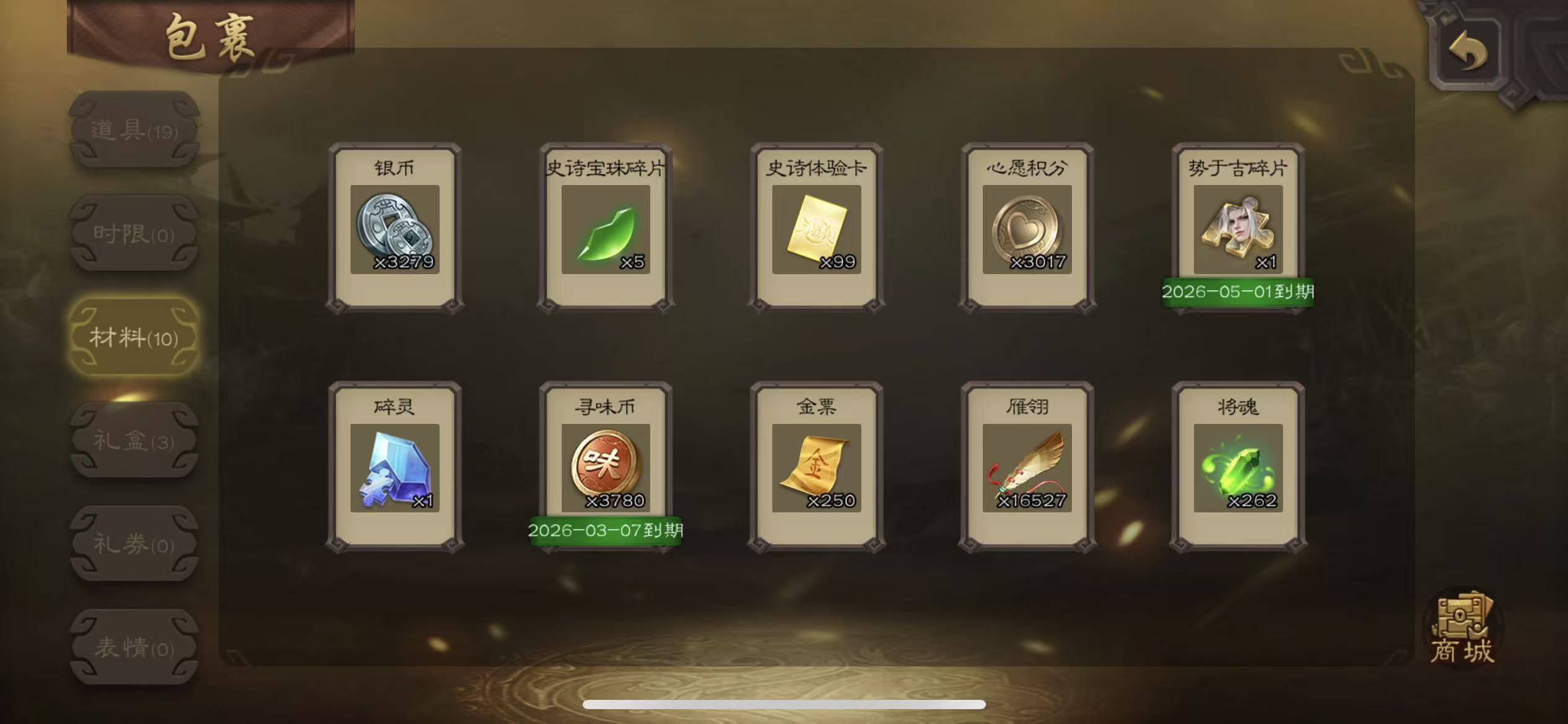 士兵73宝珠一万元宝6000将魂4万羽毛76招募令三卡