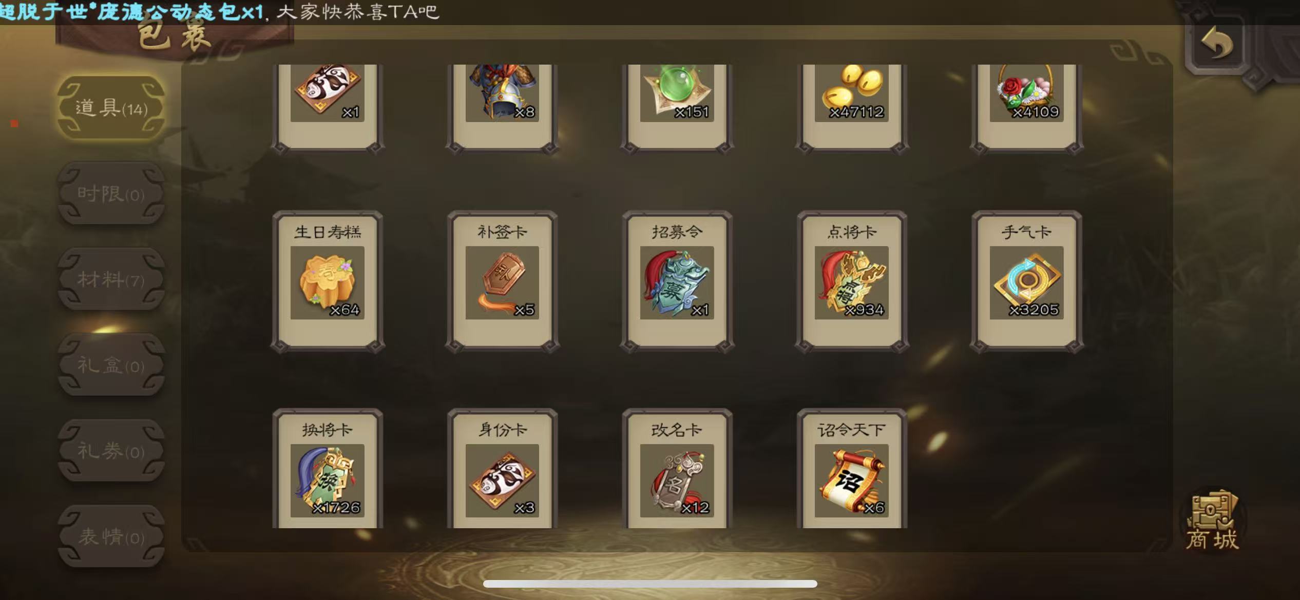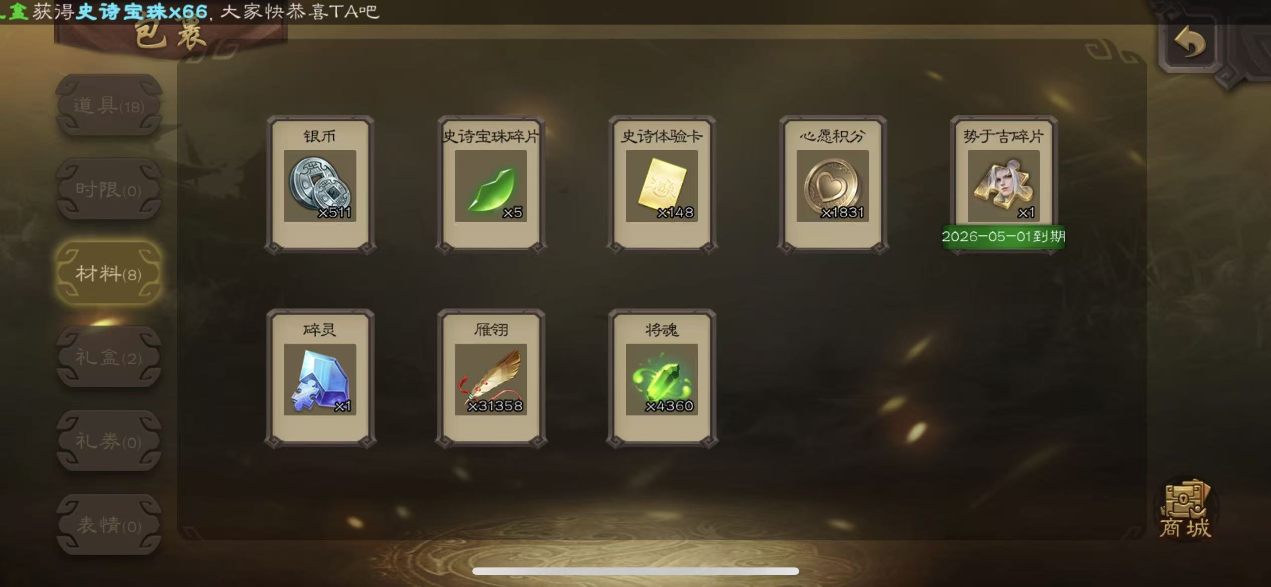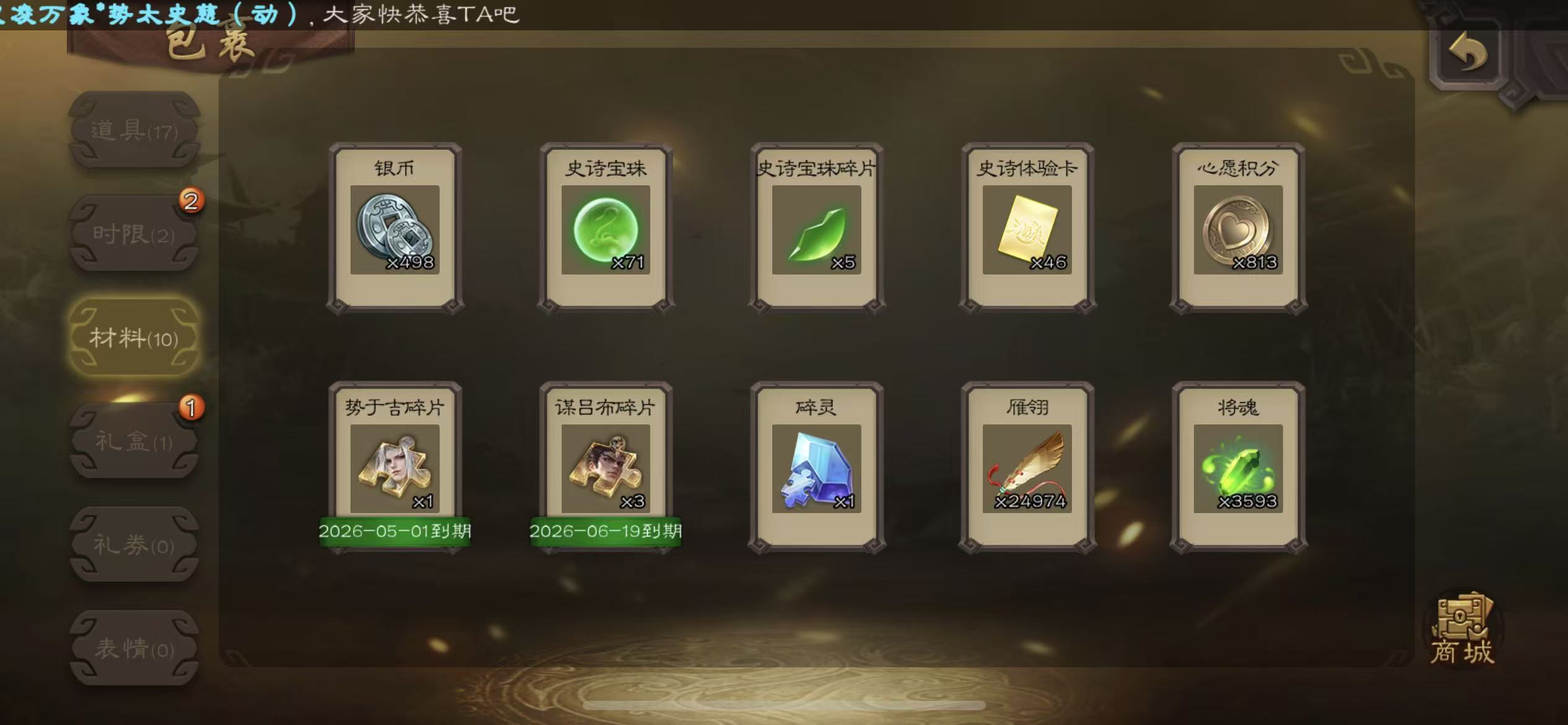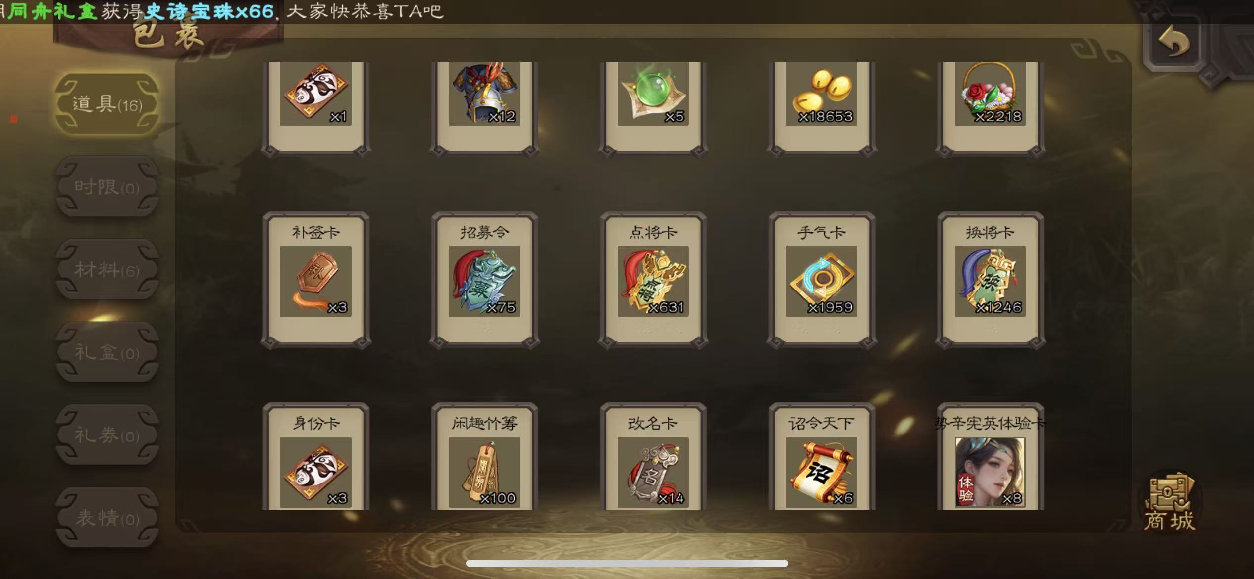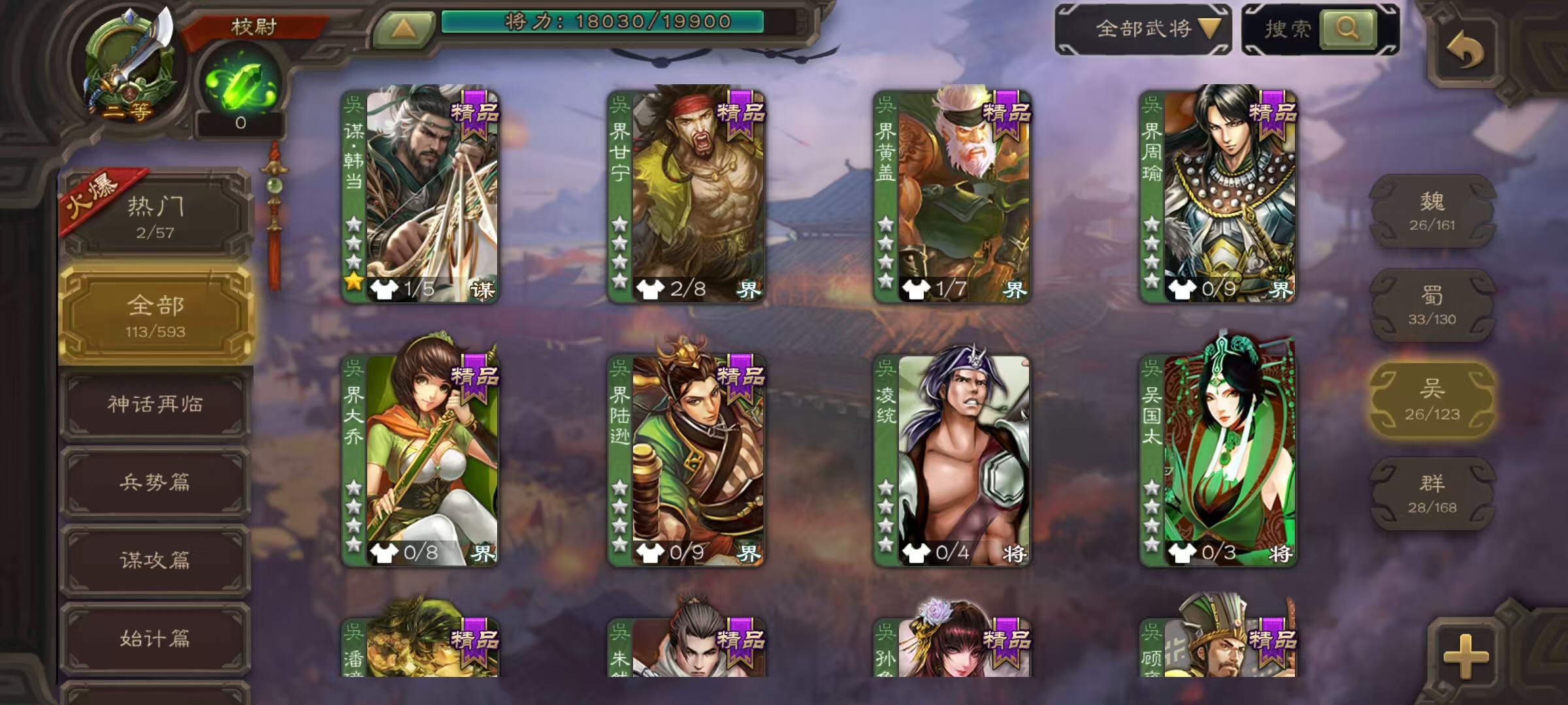 士兵56宝珠(可换势邓艾)7万羽毛5600将魂神赵云星周不易134招募令三卡