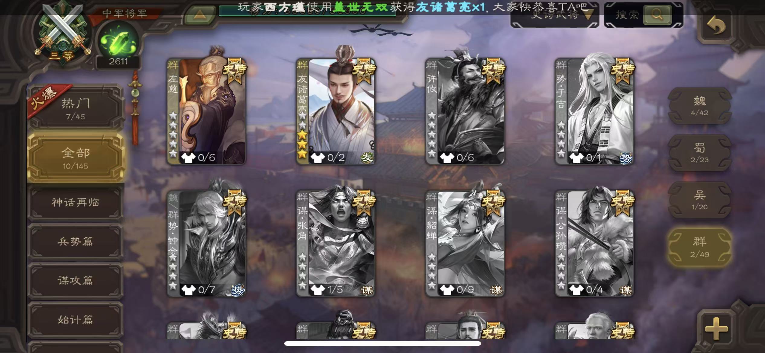 千夫长火龙果势魏延郑玄8000将魂7万羽毛128招募令三卡三国杀 - 三国杀移动版 - 默认区服