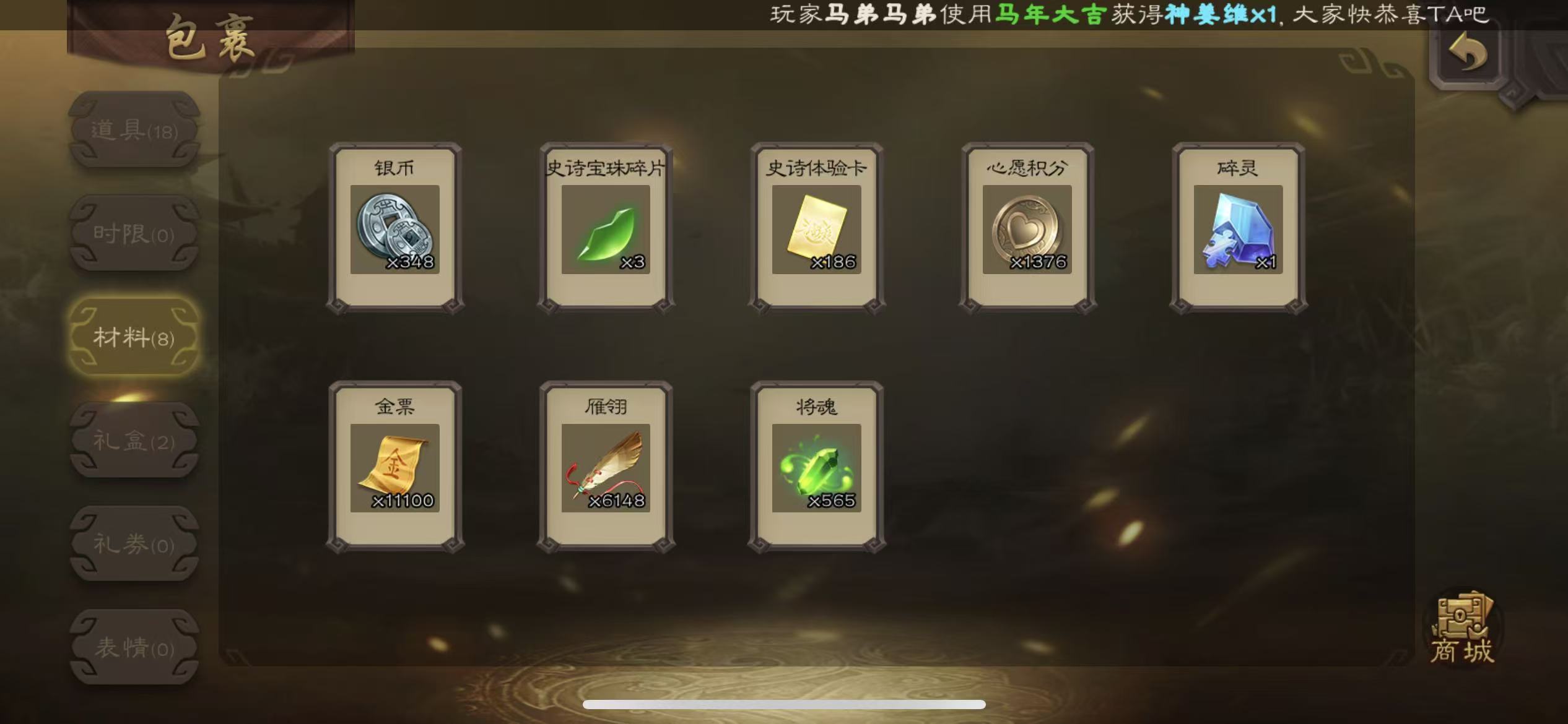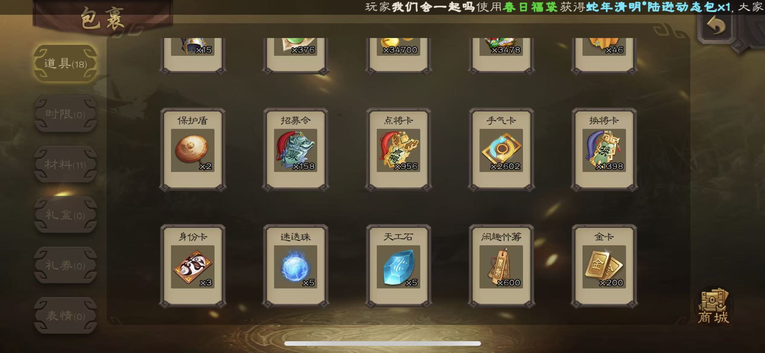 先锋友诸葛亮大宝9万羽毛1.2万将魂三卡