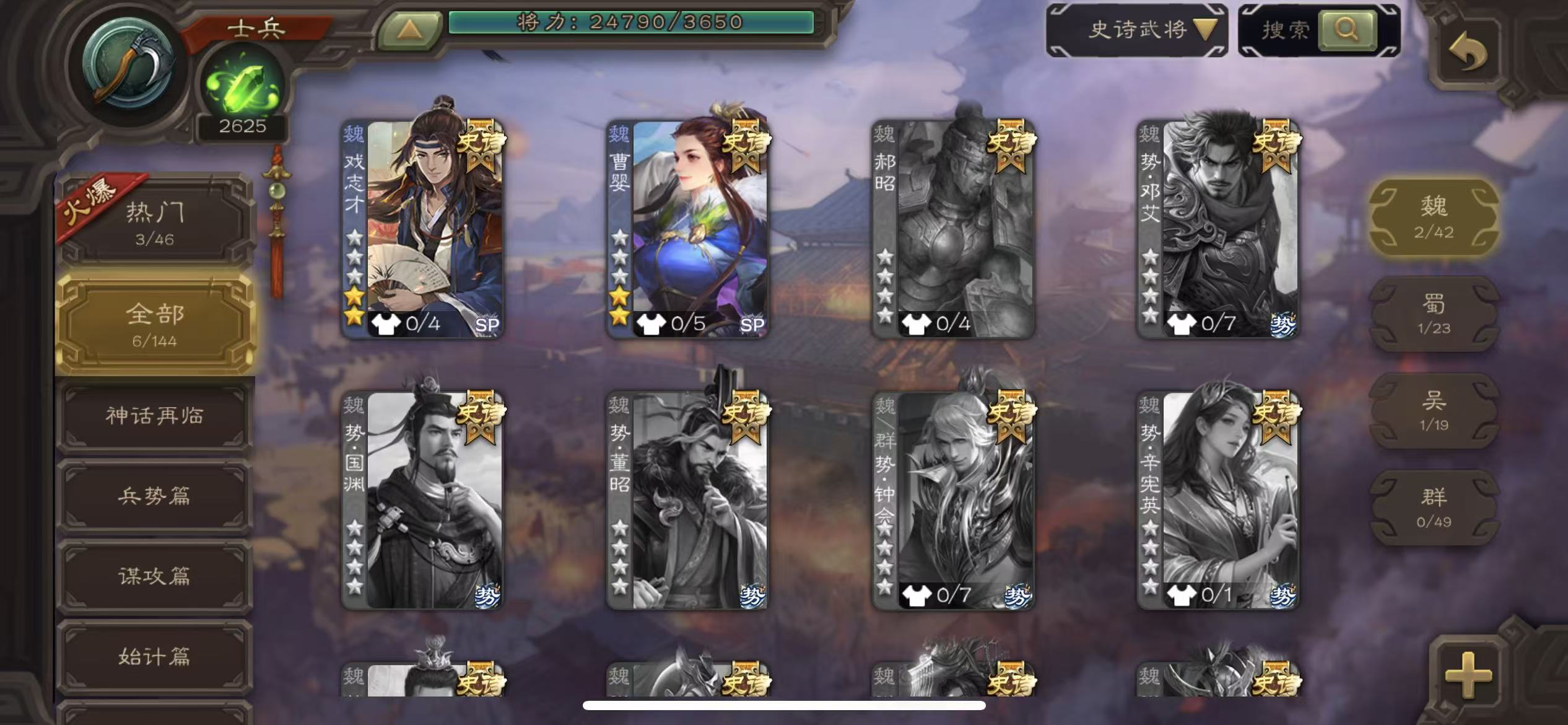 士兵火龙果势魏延5800将魂4万羽毛93招募令三卡