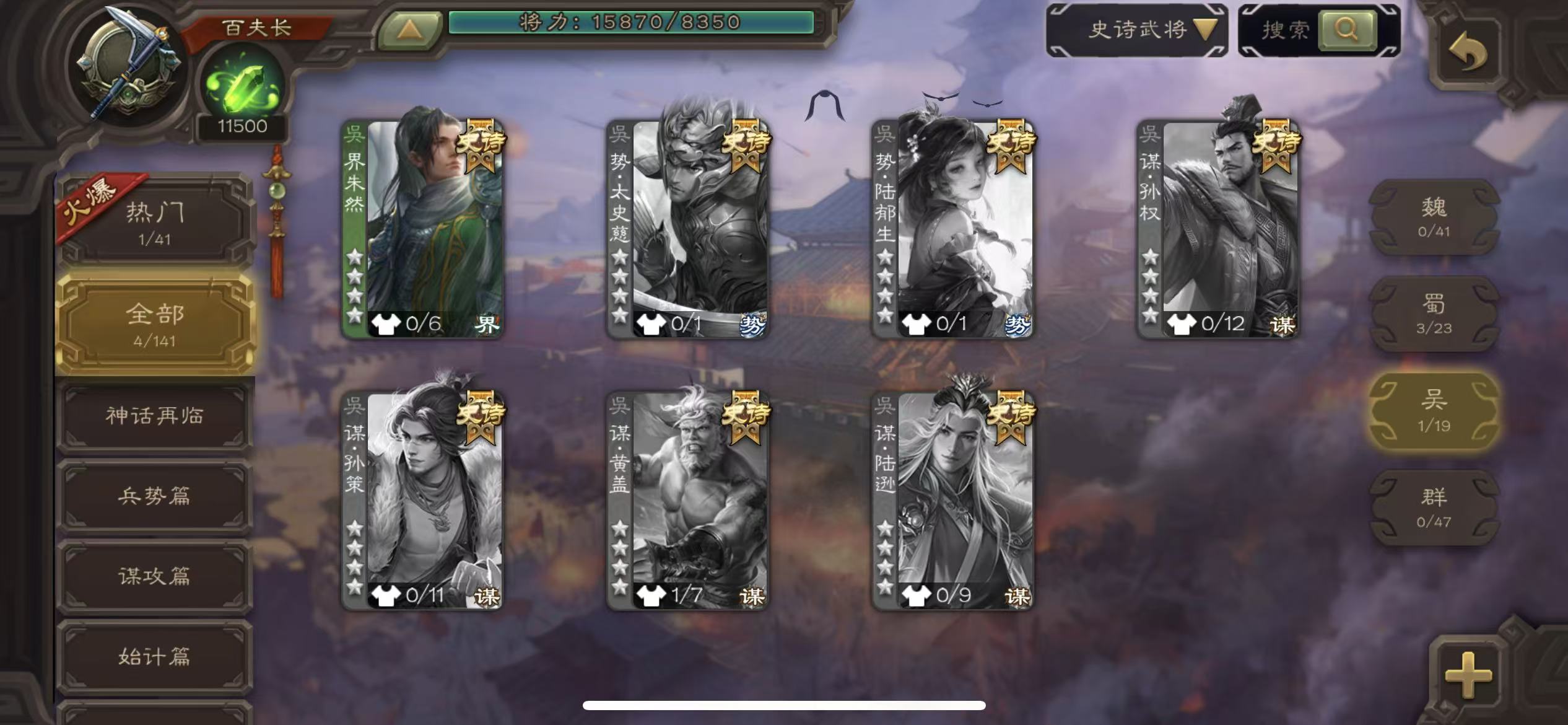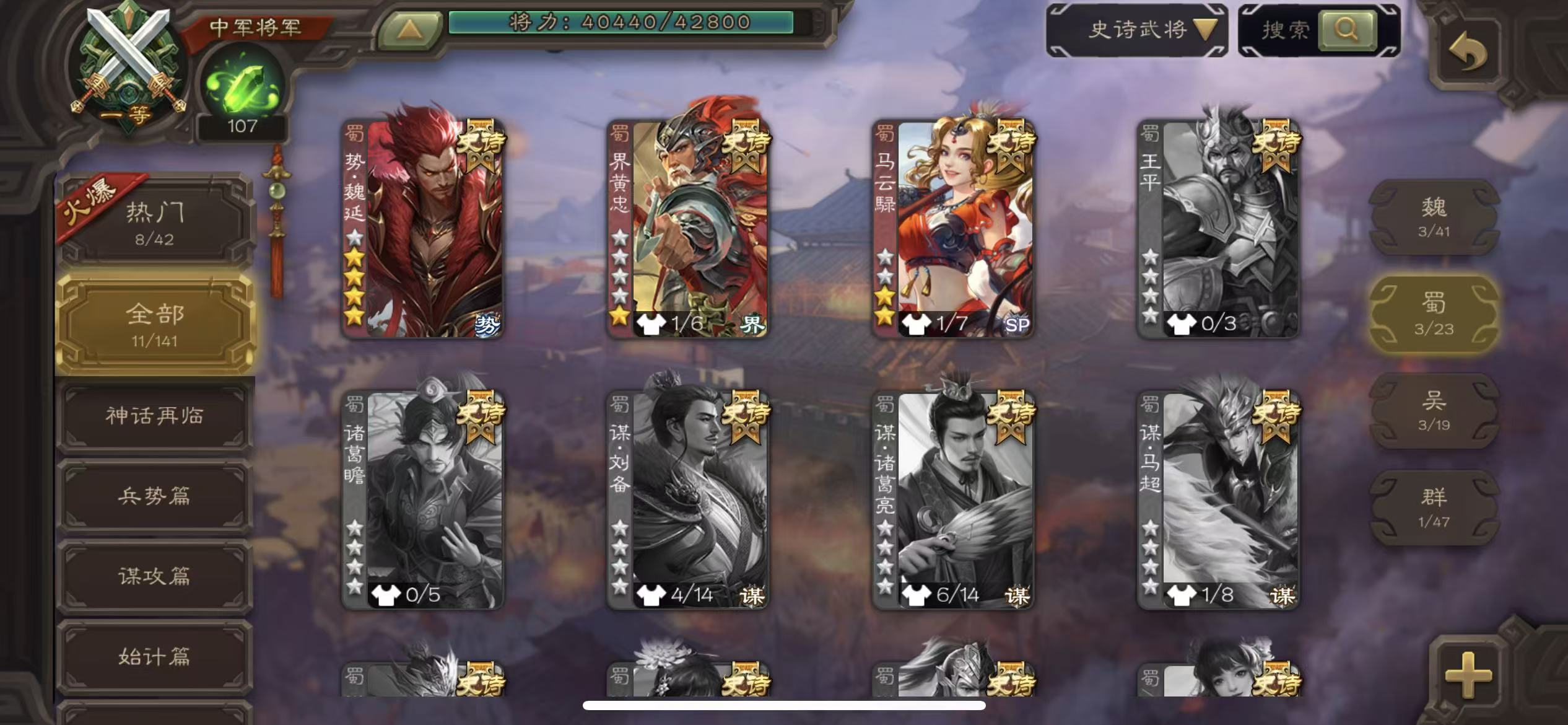 百夫长40宝珠(可换杜预)4史诗10万羽毛1.15万将魂1万银币179招募令7万豆海量三卡三国杀 - 三国杀移动版 - 默认区服