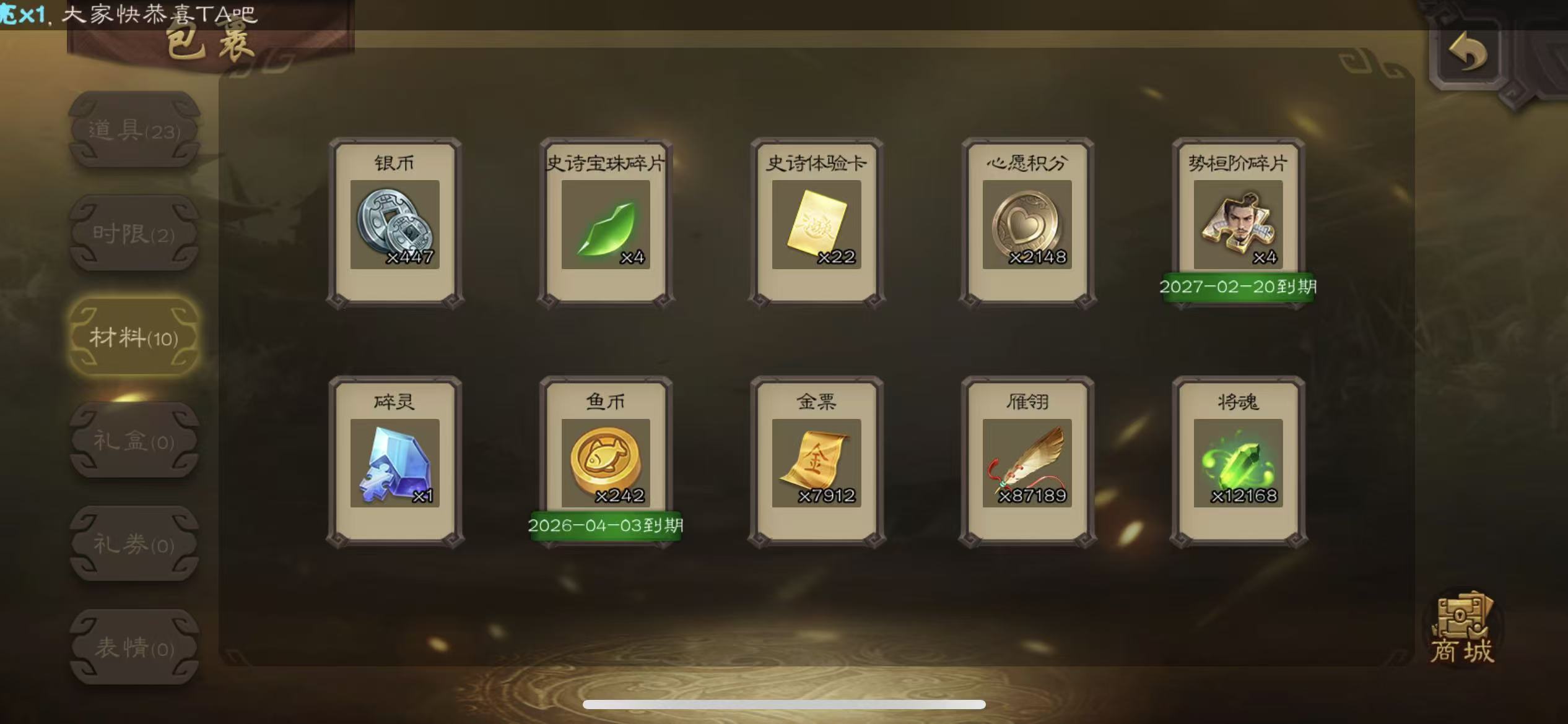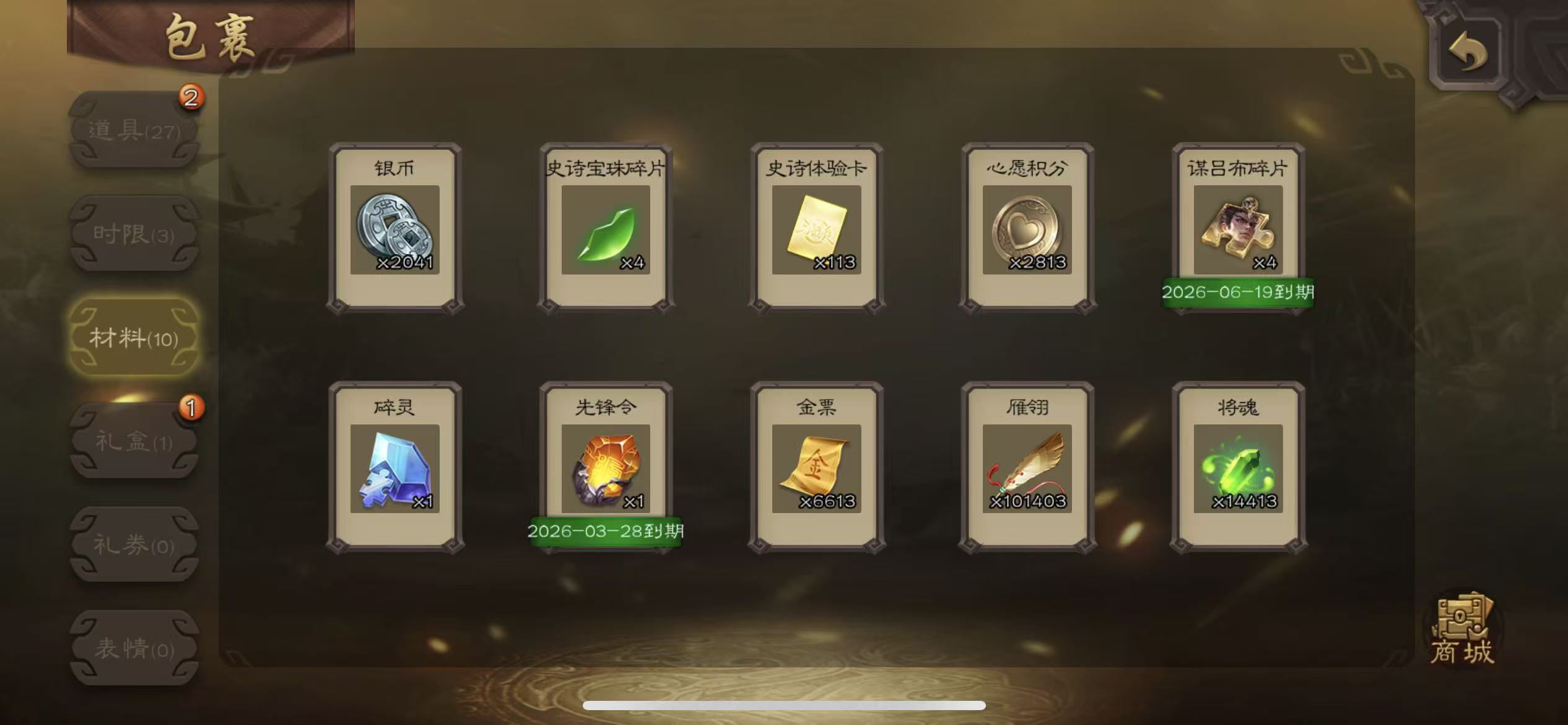 士兵崔芙界黄忠7000将魂5万羽毛84招募令三卡