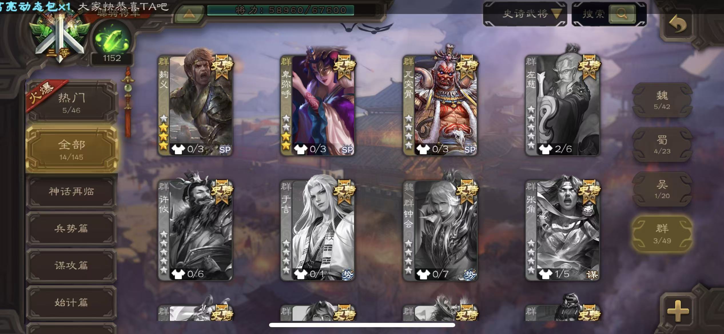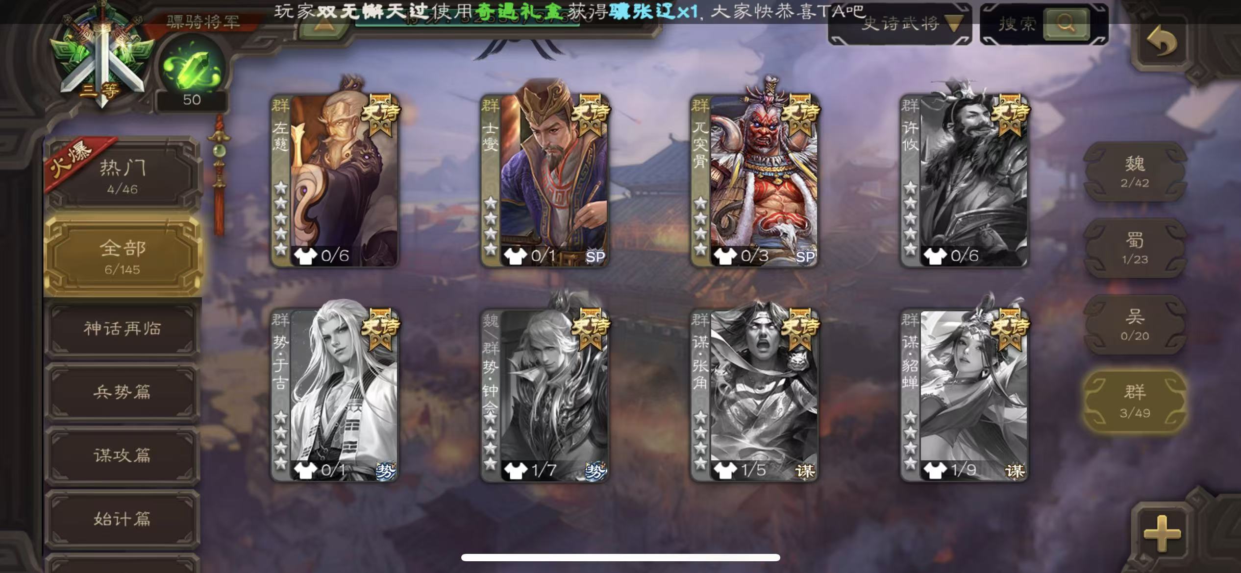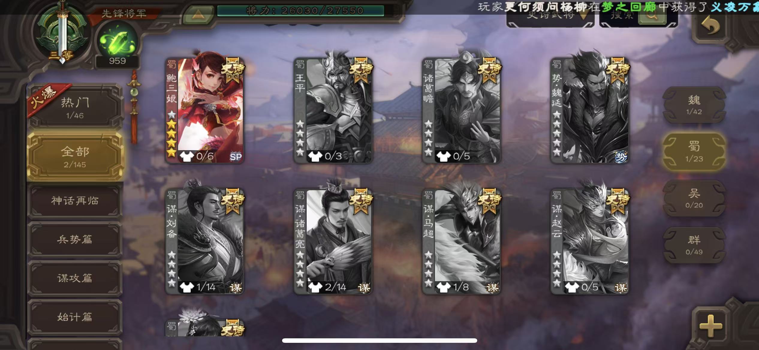 大将军37史诗动文鸯动势陆郁生动谋诸葛亮动谋陆逊动大宝张奋谋关羽动界李儒动界左慈三国杀 - 三国杀移动版 - 默认区服