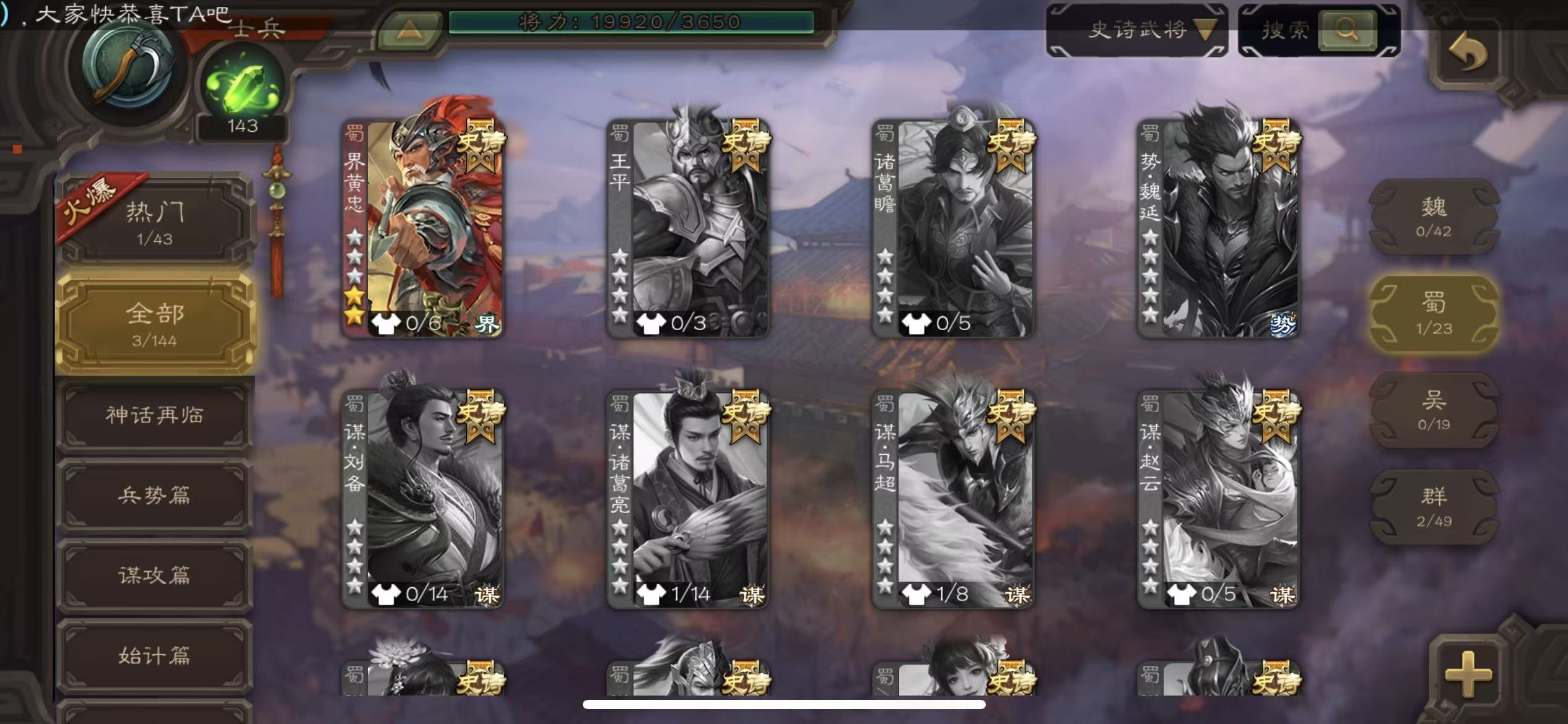 士兵70宝珠(可换火龙果势魏延)界黄忠3600将魂46招募令三卡