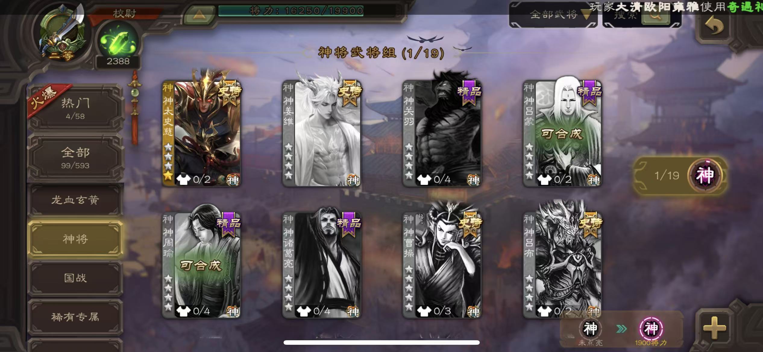 校尉势于吉花花谯周神赵云神刘备4300将魂,有白马的动皮肤三卡三国杀 - 三国杀移动版 - 默认区服