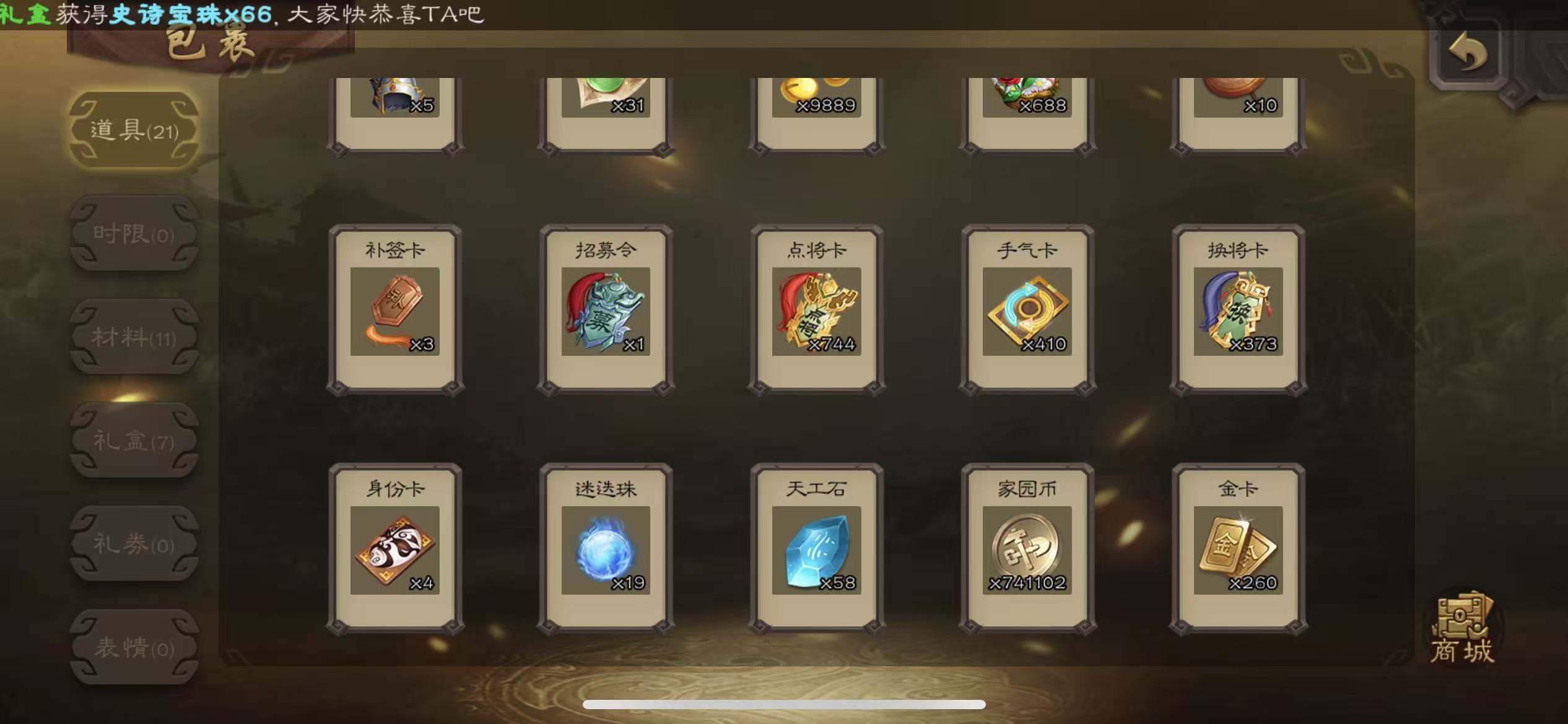 中军15宝珠火龙果势魏延谋张飞戏子马云禄神赵云神张辽7史诗3万羽毛2700将魂