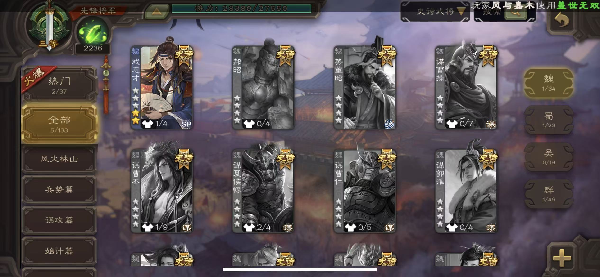 势魏延 裴秀 天宫真动皮界蔡夫人 孟达 谋郭淮还有势夏侯三国杀 - 三国杀移动版 - 默认区服