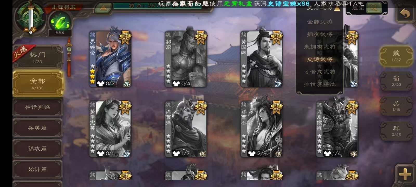 士兵神郭嘉56宝珠(可换小鸟)7.26万羽毛8000将魂203雁翎甲138招募令三卡4500菜篮子三国杀 - 三国杀移动版 - 默认区服