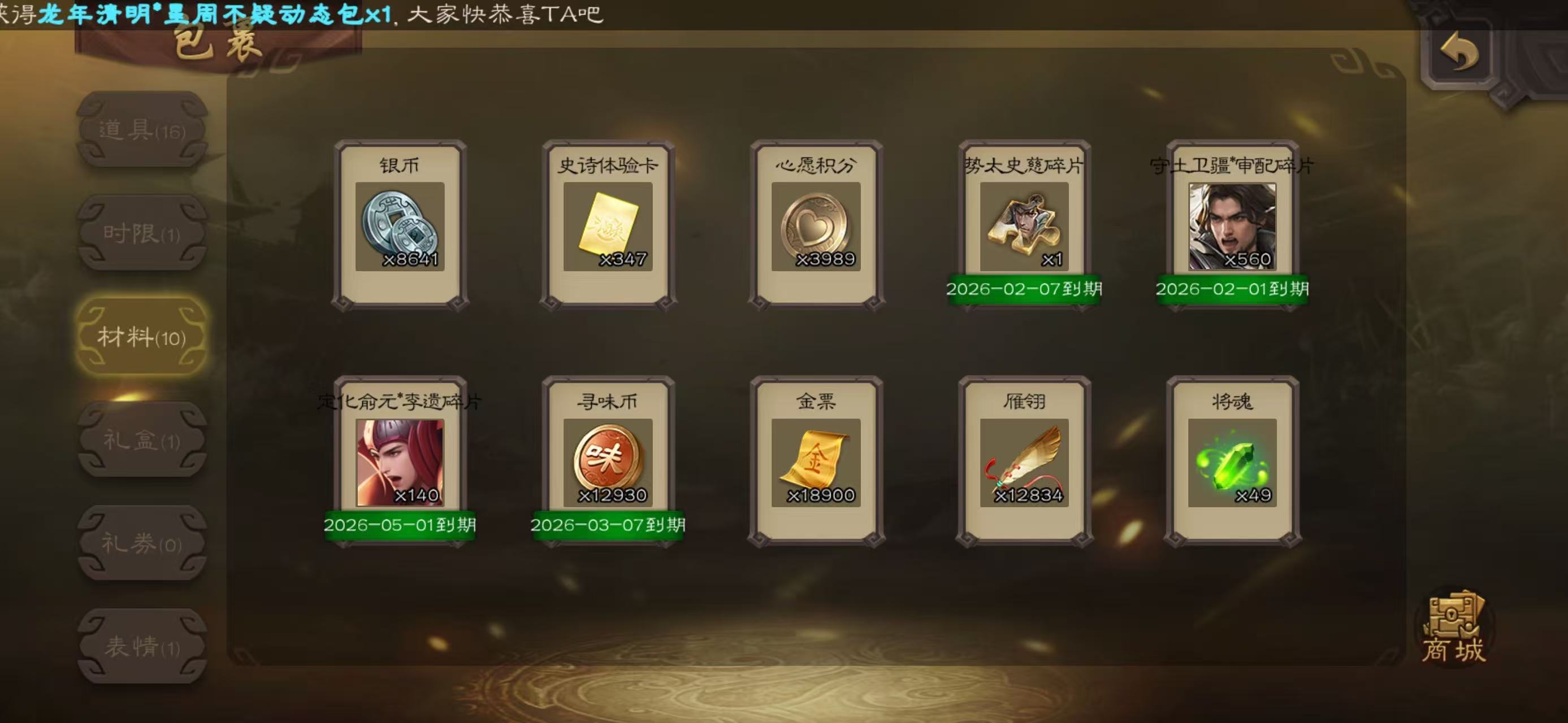 曹髦大将军,动态界徐盛,许攸,骆统,友徐庶等多史诗 有卡有豆,官服活绑字母账号