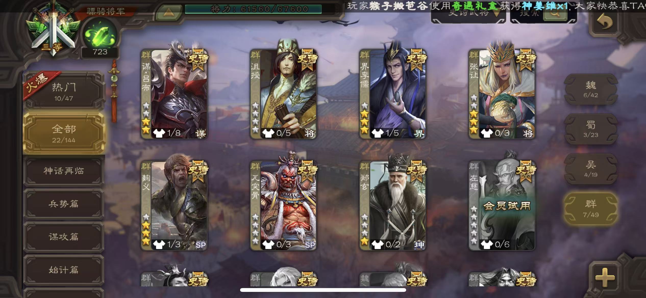 骠骑年卡22史诗火龙果势魏延动态谋关羽动势陆郁生大宝留赞谋吕布动白马动界李儒三卡三国杀 - 三国杀移动版 - 默认区服