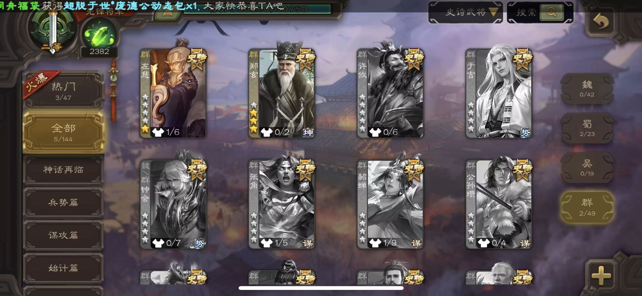 领军25宝珠动态小鸟文鸯动白马大宝戏子13史诗三国杀 - 三国杀移动版 - 默认区服