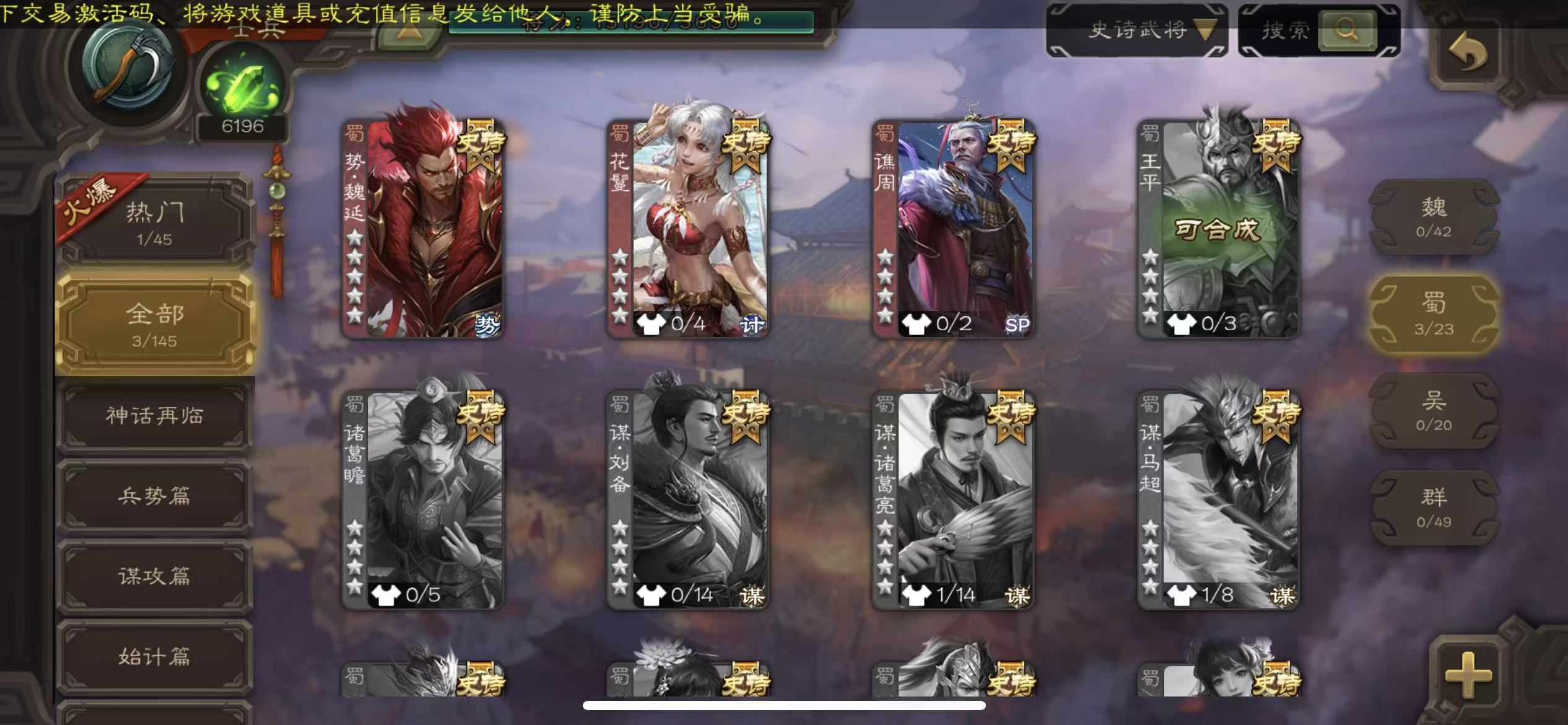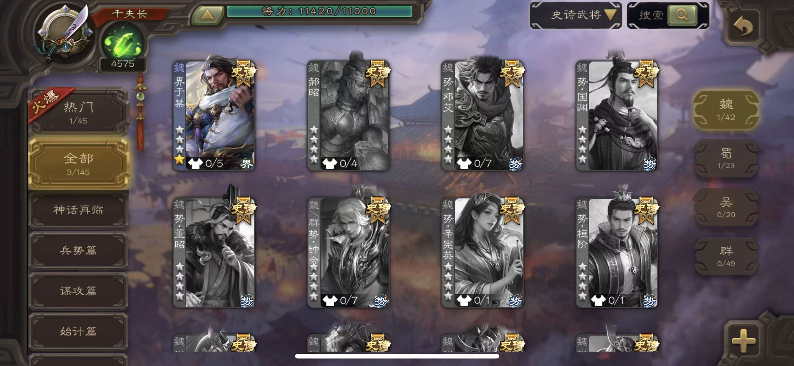 千夫长势国渊1万将魂7万羽毛三卡三国杀 - 三国杀移动版 - 默认区服