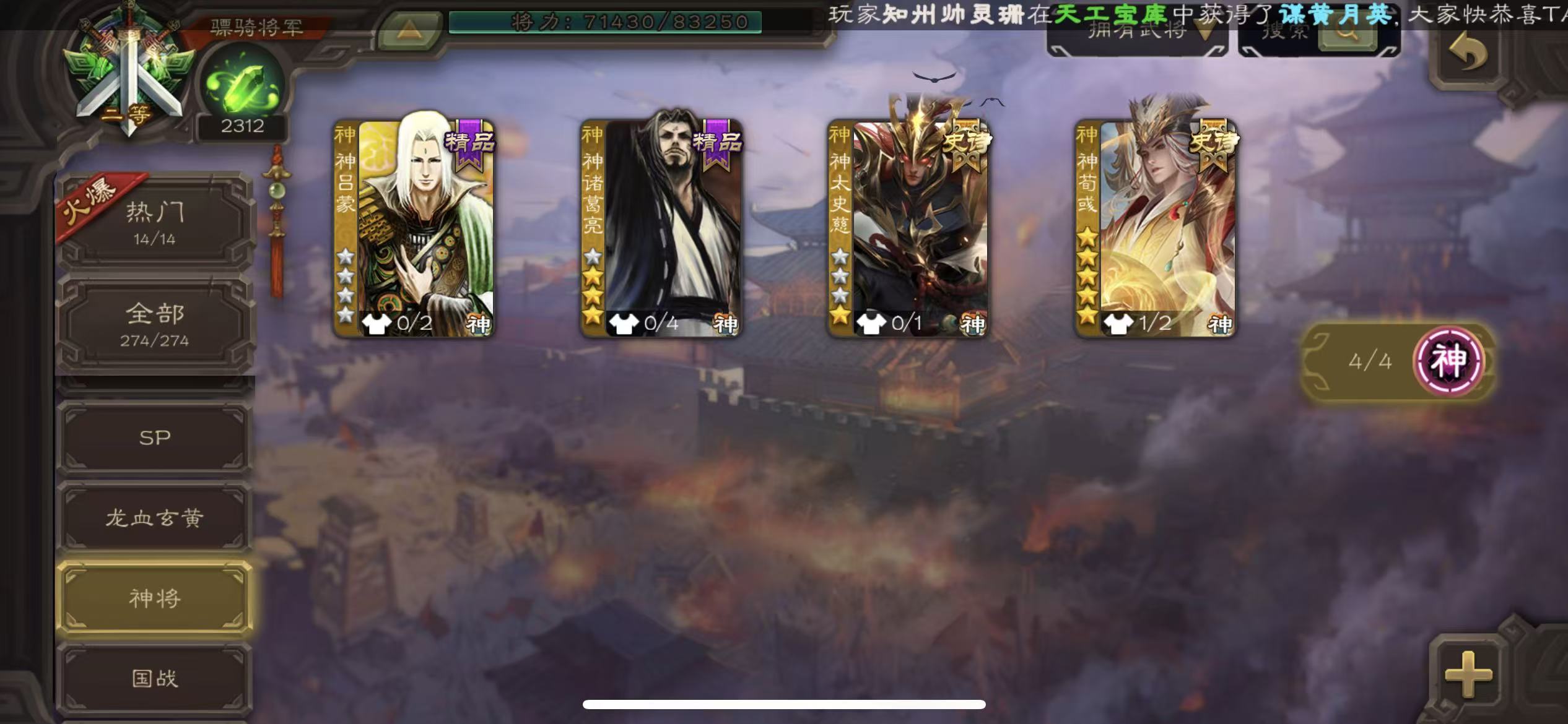 百夫长70宝珠神刘备三卡2100将魂三国杀 - 三国杀移动版 - 默认区服