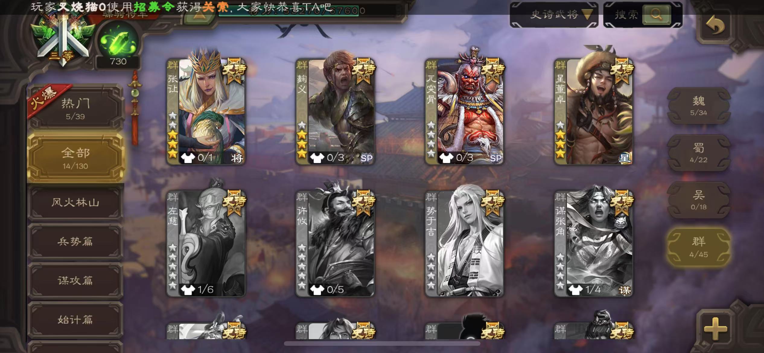 士兵势懂昭8万羽毛9000将魂130招募令未开三卡三国杀 - 三国杀移动版 - 默认区服
