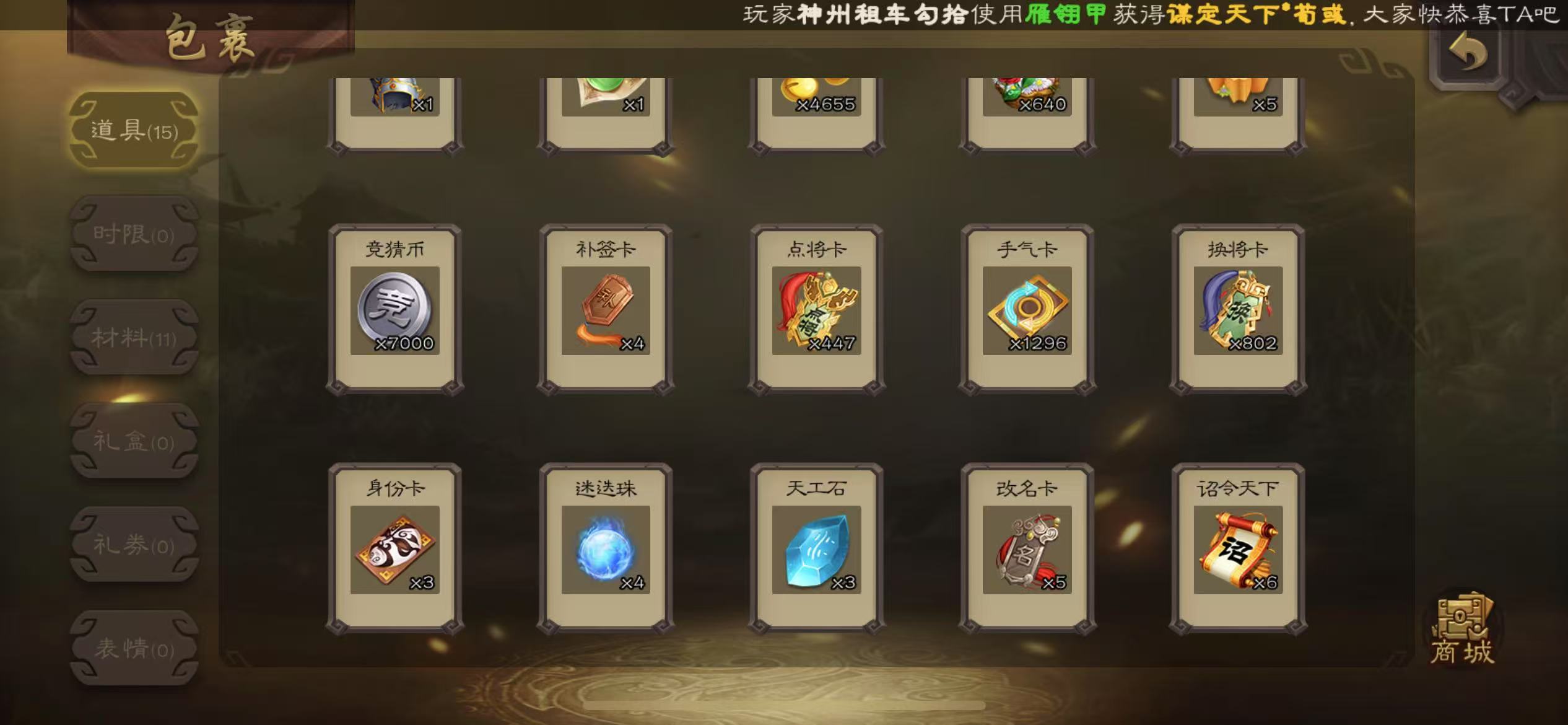 士兵7200将魂8万羽毛(可换动态神赵云或者动界钟会)137招募令三卡