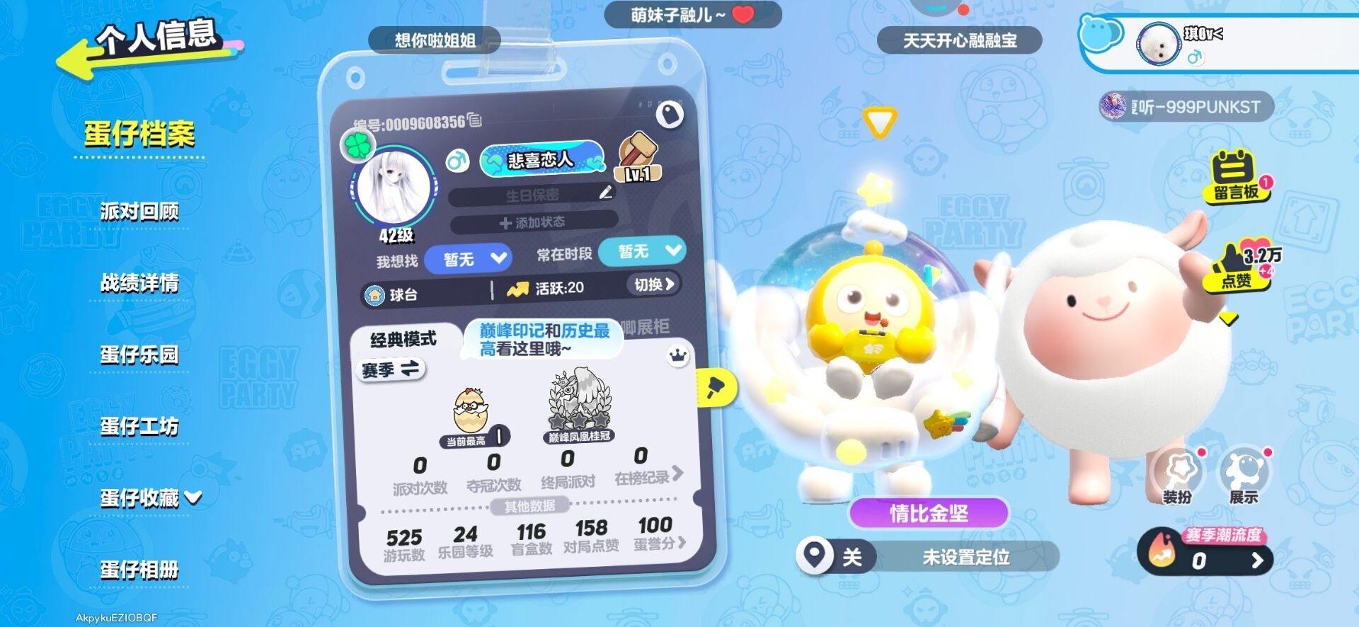 [14046000]iOS官服 手机账号 16至臻 三阶鸡蛋 【热门装扮】:草头娃娃茵茵,雾隐精灵夜清,烛光精灵夜清,城隍女君天心,鸭鸭DongDong,石心船长苏勒,沉眠的螺壶,北辰星斗破军,发美美,冷面千金竹月,甜甜圈诺奇,大祭司木西恩,超燃蛋小绿,劝学小子,大娃,胡半仙,花灯兔夭,超燃蛋小黑,控球手迅风,布偶米米,执笔少女露离,赞萌露比,三角龙小萨,天穹骑士-钻,刺猬绷绷,猪猪侠,小演员露希,小太阳葵葵,吟游诗人弥亚,元气丸子,机械师维迪,精灵莉斯尔,催眠师困困,暴龙崽崽,甲龙晶晶,鲨莉娃,萤草班主任,茨木童子,太空船长贝贝,航天员莱卡,星云船长洛洛,捕梦软软,川剧少女梧桐,星云咩咩,海藻偷偷,熊猫岁岁,盖碗茶青青,飞天小猪班尼,北极兔卢米,菜鸟笨笨,仙人掌丘丘,狸猫大力,食梦公爵莱斯,企鹅心心,莓莓甜心兔,小猪妖,渔女,沸羊羊,袋鼠嘟宝,流浪小象哆哆,宝石甲龙晶晶,极光女神典伊,小灰灰,泡澡蛙呱呱,玉龙扶风,圣翼天使-恋,仔仔熊,菠萝苏苏,僵尸博士,淘气丸子,红小豆,灰太狼,长草颜团子,李建勋,巴扎黑,DongDong,糖心蛋总,橙留香,菠萝吹雪,蜜蜂DongDong,八音盒温妮,仓鼠米仔,云村音音,虎皮卷大灰狼,铃兰三月兔,蓝樱爱丽丝,蔷薇白皇后【翅膀】:碎晶幻翼,爱神之翼,蝴蝶之梦,音浪星梦,大天使·星芒,闪闪星蝶翅膀,绘山河折扇,月白之隐,山水谣,冰晶耀盾【载具装扮】:脆脆糖话筒,失重电吉他,游游白柳仙·娇,音速风暴号,扶光妙妙鲤,星河弹弹车蛋仔派对 - 苹果 -