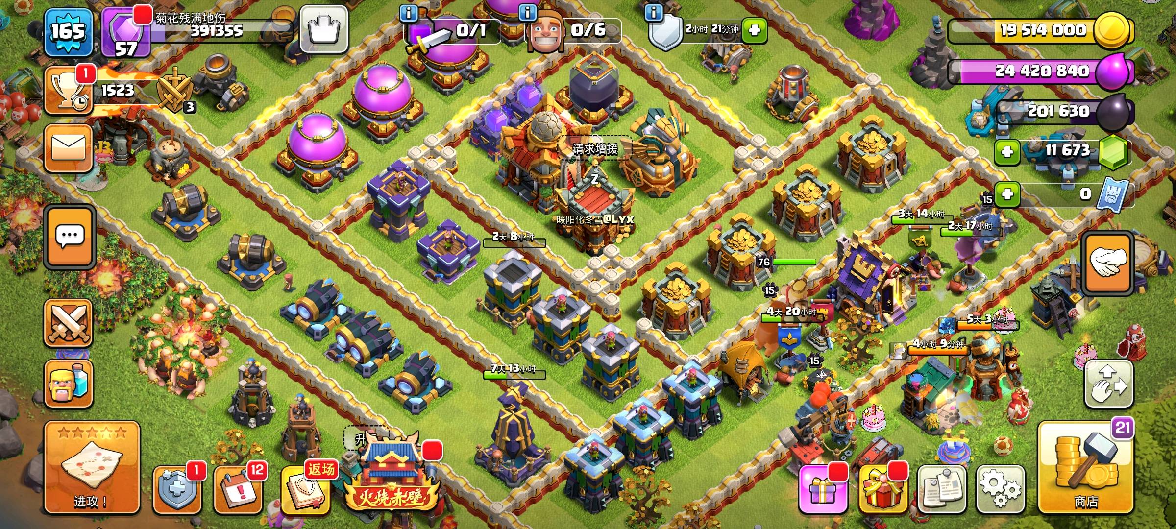 [代售]熔岩里奔腾的鲫鱼,等级250级了,科技都几乎满了,图片里几乎都有,还要详细截图可以问我,如果诚信要,可以小刀,这个号已经快10年了部落冲突 - 安卓 -