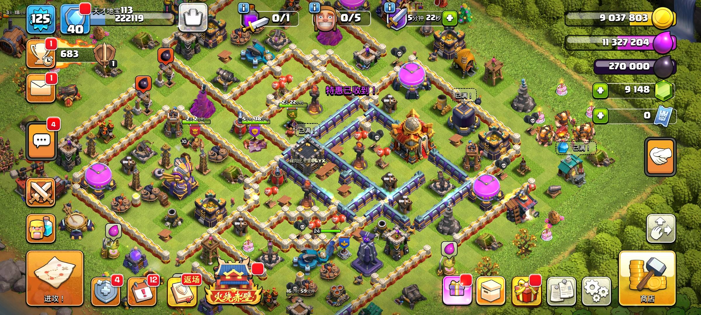 [代售]【部落冲突16本高战账号“天才地宝113”出售】 16级大本营战力不俗!蛮王53、女王58、飞盾战神47、咏王30、战神24,战宠助力战力再升;魔法物品库存丰厚,各类资源药水、升级道具加速发育。 大本营皮肤“赤壁·中军主帐”国风霸气,英雄皮肤阵容吸睛:土蛇王子、圣诞守护者、爆裂小部落冲突 - 安卓 -