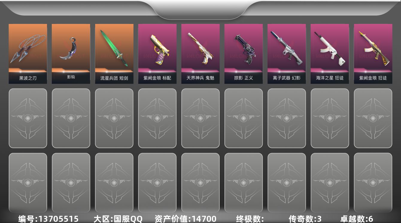 【WWC649】终极*3/卓越*5/皮肤*22/等级*63/段位:青铜/幻棱/炼狱/维斯/钛狐/壹决/捷风/不死鸟/贤者/猎枭/零/芮娜/尚勃勒/夜露/近战武器-未来开拓者/狂徒-光明哨兵/狂徒-混沌序曲/狂徒-掠影/狂徒-盖亚的复仇/狂徒-紫阙金琅/狂徒-离子武器//2.0/幻影-超限闪存/戍卫-浮光跃金/獠犬-模拟赫兹/冥驹-模拟赫兹/莽侠-超限闪存/战神-浮光跃金/雄鹿-模拟赫兹/骇灵-浮光跃金/蜂刺-超限闪存/标配-浮光跃金/正义-掠影/鬼魅-模拟赫兹/鬼魅-宿怨/《双城之战》拥抱 卡面/精灵大战 卡面/欢迎来到底城 卡面/南瓜盛典 卡面/VCT CN首冠 卡面/唱片的故事 卡面/钢