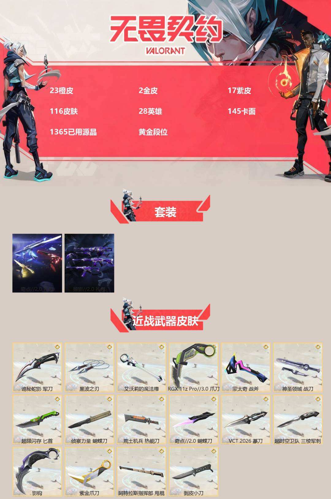HK609/【区服】QQ/【游戏等级】Lv163/【游戏段位】未定级/【剩余V点】/【剩余R点】/【皮肤资产价值】97780/【使用R点】1795/【英雄数量】28/【皮肤数量】171/【卡面数量】172/【喷漆数量】185/【挂件数量】131/【拥有套装】2025全球冠军赛套装(2025全球冠军赛-狂徒/2025全球冠军赛-蝴蝶刀/)2023全球冠军赛套装(2023全球冠军赛-狂徒/2023全球冠军赛-苦无)RGX-11z-Pro//3.0套装(RGX-11z-Pro//3.0-莽侠/RGX-11z-Pro//3.0-正义/RGX-11z-Pro//3.0-爪刀)掠影套装(掠影-狂徒/掠影-冥驹/掠影-戍卫/掠影-正义/影刃)/【拥有近战武器】星际猎兵-短剑/日耀风暴-遗器/诡秘蛇影-军刀/神圣领域-战刀/荒土机兵-热能刀/超限闪存-匕首/超能偶像-应援棒/合金战车-军刀/嘟昂嘟昂超弹力水球拳套/RGX-11z-Pro//2.0-蝴蝶刀/夜刃诡镰/黑波之刃/奇点//2.0-蝴蝶刀/鬼丸国纲/机动狂飙-战刀/侦察力量-蝴蝶刀/艾沃莉的魔法棒/穿花蝴蝶//【拥有步枪】光荣异象-狂徒/RGX-11z-Pro-狂徒/电音光谱-幻影/虚空遗器-狂徒/创·纪元-狂徒/混沌序曲-狂徒/洪荒怒焰-狂徒/塑水宗-狂徒/机动狂飙-狂徒/归零者-狂徒/超时空卫队-狂徒/源能者娱乐系统-獠犬/天界神兵//2.0-幻影/紫阙金琅-狂徒/盖亚的复仇-狂徒/侦察力量-幻影/星际猎兵-幻影/阿特拉斯指挥部-狂徒/日耀风暴-幻影/诡秘蛇影-狂徒/神圣领域-獠犬/神圣领域-幻影/荒土机兵-狂徒/超限闪存-幻影/超能偶像-戍卫/超能偶像-狂徒/弧光异彩-狂徒/合金战车-幻影/瑰梦艺语-狂徒/光环序列-戍卫/悠闲猫生-幻影/太空穿梭-戍卫/悠闲猫生-獠犬/幻语魔咒-獠犬/甜蜜战术-戍卫/末日之翼-幻影/折光棱晶-戍卫/月球哨兵-戍卫/纳米打击-幻影/逆冲蛮牛-戍卫/逆冲蛮牛-獠犬/模拟赫兹-獠犬/浮光跃金-戍卫/采蜜小蜂队-獠犬/聚合之力-幻影/彩梦之城-戍卫/花漾粉红-戍卫/数码咒术-獠犬//【拥有狙击枪】堕天遗武-冥驹/星际猎兵-飞将/阿特拉斯指挥部-莽侠/诡秘蛇影-莽侠/荒土机兵-冥驹/超限闪存-莽侠/合金战车-飞将/光环序列-冥驹/悠闲猫生-飞将/甜蜜战术-冥驹/幻语魔咒-飞将/末日之翼-飞将/星云暗涌-冥驹/月球哨兵-莽侠/模拟赫兹-冥驹/聚合之力-飞将/晶态集成-冥驹/花漾粉红-冥驹//【拥有机枪】日耀风暴-奥丁/神圣领域-战神/光环序列-战神/太空穿梭-战神/末日之翼-奥丁/纳米打击-奥丁/浮光跃金-战神/采蜜小蜂队-战神/信手涂鸦-奥丁/数码咒术-战神//【拥有冲锋枪】奇点-骇灵/阿特拉斯指挥部-骇灵/日耀风暴-骇灵/荒土机兵-骇灵/超限闪存-蜂刺/弧光异彩-蜂刺/合金战车-蜂刺/瑰梦艺语-骇灵/折光棱晶-蜂刺/星云暗涌-骇灵/星云暗涌-蜂刺/浮光跃金-骇灵/聚合之力-蜂刺/信手涂鸦-骇灵/花漾粉红-骇灵//【拥有霰弹枪】星际猎兵-判官/诡秘蛇影-判官/超能偶像-判官/瑰梦艺语-雄鹿/太空穿梭-判官/幻语魔咒-雄鹿/甜蜜战术-判官/月球哨兵-雄鹿/逆冲蛮牛-雄鹿/纳米打击-判官/模拟赫兹-雄鹿/采蜜小蜂队-判官/彩梦之城-雄鹿/数码咒术-判官//【拥有手枪】电音光谱-标配/西部未来-正义/塑水宗-正义/奇点-正义/天界神兵-鬼魅/紫阙金琅-标配/盖亚的复仇-鬼魅/星际猎兵-标配/日耀风暴-正义/诡秘蛇影-鬼魅/神圣领域-狂怒/荒土机兵-标配/超限闪存-正义/超能偶像-标配/合金战车-正义/光环序列-狂怒/瑰梦艺语-鬼魅/太空穿梭-正义/悠闲猫生-短炮/幻语魔咒-狂怒/甜蜜战术-鬼魅/折光棱晶-标配/末日之翼-短炮/星云暗涌-鬼魅/月球哨兵-正义/纳米打击-正义/逆冲蛮牛-狂怒/浮光跃金-标配/模拟赫兹-鬼魅/聚合之力-狂怒/采蜜小蜂队-鬼魅/光导纤维-鬼魅/彩梦之城-标配/信手涂鸦-鬼魅/数码咒术-鬼魅/花漾粉红-狂怒//【稀有挂件】V25第三幕铂金挂饰/第九季铂金挂饰/终章猫猫木乃伊挂饰/猫猫木乃伊挂饰/拳击战术熊挂饰/无畏契约GO第一卷芮娜挂饰/无畏契约GO第一卷零挂饰/熔岩灯挂饰/超能偶像挂饰/采蜜小蜂队挂饰/袖珍捷风挂饰/糖葫芦挂饰/迷你浓缩挂饰/第八季白银挂饰/好运福爪挂饰/瞄这里挂饰/第七季黄金挂饰/源晶工程挂饰/终章企鹅陷阱挂饰/机器伙伴挂饰/全球冠军赛方块挂饰/章鱼小弟挂饰//【卡面信息】分崩离析卡面/双城之战拥抱卡面/超能偶像卡面/RGX11zPro30卡面/Luie卡面/情人节猎枭卡面/找回包赔无畏契约 - wegame -