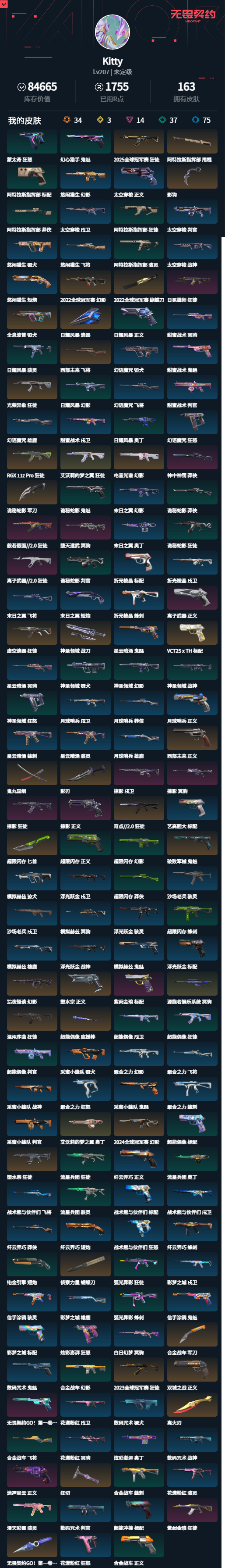 HK624/Lv155/黄金I/刀皮数量11/枪皮数量127(绝版4限定29终极4卓越10)/皮肤资产价值69850/已用R点1600/【刀皮】/近战武器-2022全球冠军赛蝴蝶刀/近战武器-2021全球冠军赛爪刀/近战武器-紫金爪刀/近战武器-天玄刀/近战武器-沙尘幻旅匕首/近战武器-破败王者之残刃/近战武器-个人近战单位/近战武器-钢轨卫士战锤/近战武器-弧光异彩军刀/近战武器-日耀风暴遗器/近战武器-阿特拉斯指挥部甩棍/ 【枪皮】/狂徒-2021全球冠军赛/幻影-2022全球冠军赛/鬼魅-破败军械/正义-毁灭骑士/短炮-洪荒怒焰/骇灵-破败军械/判官-偃月苍龙/狂徒-塑水宗/狂徒-归零者/狂徒-洪荒怒焰/狂徒-RGX11zPro/狂徒-多弥尔的复仇/幻影-破败军械/幻影-洪荒怒焰/戍卫-破败军械/冥驹-偃月苍龙/飞将-塑水宗/莽侠-千灵华绽2.0/正义-781-A协议/骇灵-781-A协议/幻影-781-A协议/獠犬-781-A协议/标配-紫阙金琅/雄鹿-起源/雄鹿-紫阙金琅2.0/狂徒-盖亚的复仇/狂徒-堕天遗武/狂徒-奇幻朋克3.0/幻影-侦察力量/幻影-异鳞魔蛇/冥驹-堕天遗武/战神-离子武器2.0/正义-沙尘幻旅/短炮-钢轨卫士/短炮-弧光异彩/狂怒-钢轨卫士/骇灵-蒙太奇/骇灵-沙尘幻旅/蜂刺-弧光异彩/判官-星际猎兵/雄鹿-复古浪潮/狂徒-钢轨卫士/狂徒-弧光异彩/狂徒-沙尘幻旅/幻影-蒙太奇/幻影-星际猎兵/幻影-噬源兽防卫工程/戍卫-钢轨卫士/獠犬-弧光异彩/冥驹-复古浪潮/飞将-星际猎兵/飞将-沙尘幻旅/战神-蒙太奇/标配-超集系统/标配-光导纤维/标配-彩梦之城/鬼魅-光导纤维/鬼魅-胡桃狂想/鬼魅-信手涂鸦/正义-风暴之子/短炮-深海水族/狂怒-珍珠棘贝/狂怒-萌彩剪影/骇灵-珍珠棘贝/骇灵-光导纤维/骇灵-信手涂鸦/蜂刺-深海水族/蜂刺-战术小伙伴/蜂刺-胡桃狂想/判官-萌彩剪影/雄鹿-风暴之子/雄鹿-彩梦之城/狂徒-超集系统/幻影-战术小伙伴/戍卫-风暴之子/戍卫-珍珠棘贝/戍卫-彩梦之城/戍卫-萌彩剪影/獠犬-战术小伙伴/獠犬-胡桃狂想/冥驹-风暴之子/冥驹-胡桃狂想/飞将-超集系统/飞将-光导纤维/飞将-信手涂鸦/奥丁-战术小伙伴/奥丁-信手涂鸦/战神-深海水族/战神-萌彩剪影/狂徒-幻心猎手/狂徒-狂翼掠空/狂徒-阿特拉斯指挥部/幻影-日耀风暴/莽侠-阿特拉斯指挥部/正义-日耀风暴/标配-阿特拉斯指挥部/骇灵-阿特拉斯指挥部/骇灵-日耀风暴/奥丁-日耀风暴/幻影-悠闲猫生/戍卫-光环序列/戍卫-太空穿梭/戍卫-甜蜜战术/獠犬-诛心猎手/獠犬-悠闲猫生/獠犬-幻语魔咒/冥驹-甜蜜战术/莽侠-甜心猎手/飞将-悠闲猫生/飞将-幻语魔咒/正义-诛心猎手/正义-太空穿梭/鬼魅-瑰梦艺语/鬼魅-甜蜜战术/短炮-甜心猎手/短炮-悠闲猫生/狂怒-光环序列/狂怒-幻语魔咒/骇灵-瑰梦艺语/蜂刺-甜心猎手/判官-太空穿梭/判官-甜蜜战术/雄鹿-瑰梦艺语/雄鹿-幻语魔咒/奥丁-诛心猎手/战神-光环序列/战神-太空穿梭/【热门卡面】/峡谷骑手卡面/宇宙大战卡面/5周年救赎卡面/诛心猎手卡面/5周年为何而战卡面/战术偶像团卡面/5周年钢琴家玛丽卡面/甜心猎手卡面/5周年盐蚀卡面/禁灭工牌卡面/5周年为你而战卡面/TB-01战术巨熊卡面/星际猎兵卡面/光环序列卡面/5周年颠覆战局卡面/5周年流光似箭卡面/5周年掌控全局卡面/再火一回卡面/身陷蝰腹卡面/第四季破局时刻卡面/大军“鸭”境卡面/终章5周年破碎卡面/5周年决意卡面/5周年悠闲假日卡面/古典雕塑卡面/5周年两个世界卡面/5周年宇宙分裂卡面/只剃两边卡面/5周年狂欢之夜卡面/清风徐来卡面/宁静海岸卡面/5周年夺还卡面/钢锁vs盖可卡面/5周年消灭源能者卡面/双城之战金克丝卡面/Clutch卡面/5周年破碎卡面/悠闲猫生卡面/阿特拉斯指挥部卡面/太空穿梭卡面/5周年薪火初燃卡面/王牌对王牌卡面/2022全球冠军赛卡面/归乡芮娜卡面/是不是哥们卡面/5周年卡面/亲手缝制卡面/孤独派对卡面/狂欢就现在卡面/聚合之力卡面/声感陷阱设计图卡面/时间到卡面/最高舞台卡面/梦幻奶茶卡面/零点嗅探设计图卡面/夜班卡面/瓦娃脸雪糕卡面/沙雕爆能器卡面/珍珠棘贝卡面/盖可工牌卡面/复古浪潮卡面/清除名单卡面/深海水族卡面/艺无止境坚不可摧卡面/艺无止境火焰卡面/艺无止境灵感卡面/龍记卡面/先瓦为敬-红色卡面/红鳞松叶卡面/化茧成蝶卡面/比比看谁快卡面/781-A协议卡面/蝰蛇vs幽影卡面/光导纤维卡面/没有什么能逃过我的眼睛卡面/逆向独行卡面/战术小伙伴卡面/同步耍酷卡面/钢轨卫士卡面/势不可挡盖可卡面/完美调谐卡面/暗枪卡面/破败军械卡面/黑影先生的咖啡卡面/天台狂欢卡面/纪念照P2卡面/胡桃狂想卡面/沙尘幻旅卡面/一击全倒卡面/壹决工牌卡面/萌彩剪影卡面/势不可挡KO卡面/铁臂vs雷兹卡面/Luie卡面/情人节不死鸟卡面/神射企鹅卡面/夯实根基卡面/热烈欢迎卡面/夜露vs不死鸟卡面/铁臂设计图卡面/不要松手卡面/维特鲁威皮蛋卡面/彩梦之城卡面/旧路重游卡面/捷风vs捷风卡面/战斗贤者卡面/弧光异彩卡面/最新一期卡面/信手涂鸦卡面/百弹不侵卡面/军团卡面/幽影行者卡面/友军火力卡面/纳米炸弹卡面/冰淇淋店卡面/冠军小队卡面/当心坠落卡面/万事如意卡面/代号红色卡面/爆弹机器人设计图卡面/新兵报到卡面/V契约卡面/无畏契约卡面/【热门挂饰】/天外飞客挂饰/幻心猎手挂饰/甜心猎手挂饰/诛心猎手挂饰/V25第六幕纪念币挂饰/垃圾大盗挂饰/狮心勃勃挂饰/嗨宝药瓶挂饰/烘焙战术熊挂饰/星际伙伴挂饰/淡定鸭挂饰/致命剂量挂饰/V25第五幕纪念币挂饰