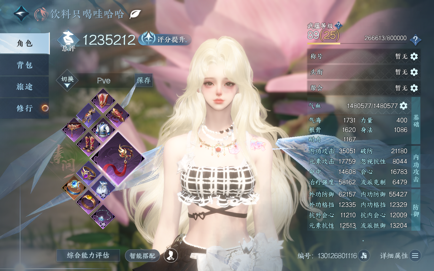 XY-076651093 战力值1384739 总评1384739 角色等级89 衣品值248570 国色值51100 已用天赏石23 未用天赏石0 天霓染数量3 【网易手机账号】 【无换绑冷却】 【玄机】 【男】 【6级】 【把酒临风】 【互通】 副本外观1 天赏外观9 天霓染2 天赏祥瑞2 天赏灵宠1 祥瑞坐骑34 商城外观44 副本外观:白夜拂雪; 天赏外观:鳞川,墨狩,无双,泽明,风华,浮云山,火焰武器,雷霆武器,绯烟香袅; 天霓染:耀光*1,迢迢霄汉*1; 天赏祥瑞:月川灵,流光溯; 天赏灵宠:灵宠·天狼星; 祥瑞坐骑:纵风甲车·赤,呆宝,布丁,假面,风行·江湖景,风行·世间情,风行·万灯明,龙衔瑞焰,金冠鼠鼠,纵风甲车·玄,粉黛娇,幻琉晶,星河转·银昼,星河转·金夕,骋风叱焰,抟乌镇妖,伯力,瓜皮,墨流云·玄色,奔虹赤,彩虹小马,木小马,银砂素波,犬威哮月,犬威哮月·沧,腾云逐日,梅香团子,绒绒夜,牛奶酥,隐云涧,西部驴仔,侠道游,逍遥游,空山闲; 商城外观:寂雾藏影,雾蓝星瞳,逸夏浮澜,羽信絮梦,谜踪神探,曙光探影,冥渊,惜金纳缘,紫渊龙堂,云极天穹,白凤御羽,诗剑纵歌,跃动心芒,朔雪从风,灼金喵影,灵语星彩,狼原灰骑,晴蓝逸思,暮夜陷落,雕骨琢心,悬蛛结心,晴岸涛吟,不负卿愿,白露惑心,玄喵夜行,鳞纱幻海,鳞骨逢幽,贪狼摄星,开阳执戈,衣香鬓影,玉泽凌烟,金粉绮梦,烽火浮生,赤狐魅语,圣月沉夜,醉墨狂歌,天纵恒尊,林泽仙踪,广寒遗客,白灵幻尘,对影邀月,迢迢霄汉,暮云苍野,轻功诀天马;逆水寒手游 - 踏北尘 -