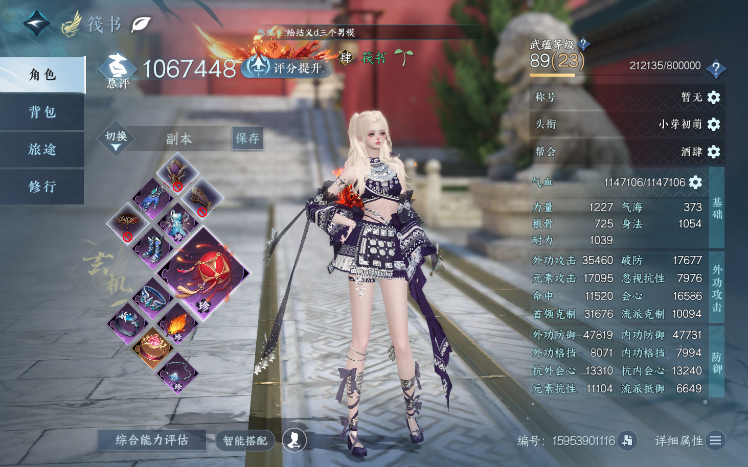XY-076648289 战力值833100 总评833100 角色等级89 衣品值207805 国色值64560 已用天赏石9 天霓染数量1 【网易手机账号】 【有换绑冷却】 【素问】 【女】 【5级】 【把酒临风】 【互通】 转盘外观2 天赏外观6 天霓染1 祥瑞坐骑39 商城外观61 武器环身1 配饰3 转盘外观:连霏,旋悠光; 天赏外观:绯曜,琴心,絮粉,琼池仙露,臻狐,琼海; 天霓染:倾心*1; 祥瑞坐骑:呆宝,布丁,风行·谦谦有礼,风行·冷香萦,金冠鼠鼠,粉黛娇,幻琉晶,狂霸天,骋风叱焰,伯力,咩郎,瓜皮,奔虹赤,云络,萌莓,风行·江湖景,风行·世间情,风行·万灯明,龙衔瑞焰,纵风甲车·赤,星河转·银昼,星河转·赤夜,贺岁喜狮,霸霸,墨流云·玄色,墨流云·朱红,墨流云·靛青,彩虹小马,木小马,犬威哮月·沧,牛奶酥,玉霄飞练,梅香团子,绒绒夜,隐云涧,西部驴仔,侠道游,逍遥游,空山闲; 商城外观:雪团云绒,金筹曜夜,羽信絮梦,幽蝶魅影,幻音星缘,暗蔷魅影,音律织光,幽梦逢她,碎玉怜姻,云梦萤星,焕曜旋煌,紫霄云旗,司命秋罗,海月漫歌,曦凤嘉煌,绯夜誓语,鸿福昭运,灵娲泽生,神戬天威,朝歌旧梦,天籁闻歌,晶梦绮舞,闻鹤九皋,跃动心芒,朔雪从风,逍遥千风,灵语星彩,幻梦巡礼,绯月狼舞,白夜俘获,凤亭疏香,温语愈心,芳汀花影,空冥铃语,云汉逢夕,斗墨金枢,玄喵夜行,鳞纱幻海,鳞骨逢幽,贪狼摄星,青林雀舞,开阳执戈,衣香鬓影,混天焚莲,瀚渊龙炎,金祷昼梦,金粉绮梦,烽火浮生,赤狐魅语,圣月澄空,天纵红颜,林泽清瑶,广寒游仙,白灵雪魅,青玉引,对影邀月,墨隐千秋,枫华九霄,青溪春信,迷迭萧疏,白羽武器; 武器环身:剑渡东海; 配饰:藏月迷晖,陌野萤梦,启明白羽;