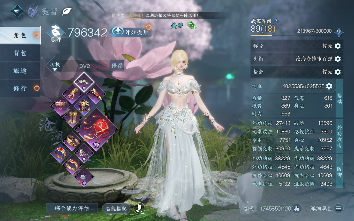 【明月火区一醉号+12高颜值自染女号三未染+六转盘(棱镜+银刃+玉宸+微光+连霏+最火环身渊影灭空)权威麒麟车+祥瑞九尾狐+背包一颗未用】 战力值13.67 总评13.67 角色等级89 衣品值420600 国色值168500 已用天赏石65 未用天赏石1 天霓染数量12 【网易邮箱账号】 【无换绑冷却】 【神相】 【男】 【8级】 【一醉轻王侯】 转盘外观6 天赏外观22 天霓染6 天赏祥瑞6 天赏灵宠1 祥瑞坐骑25 商城外观66 转盘外观:棱镜,银刃,玉宸,连霏,微光,渊影灭空; 天赏外观:渊冰,燎神墟,悲落雪,恣情欢,无言歌,海神泪,长乐,星雾,无双,鳞川,金杯错,熹羽,龙荒,天钧,熙明,风华,绛烟,琼海,幻焰狐影,蝴蝶武器,轻功诀问仙,绯烟香袅; 天霓染:珊枝琢浪*1,丹橘织雪*1,微光*1,无言歌*1,无双*1,玄喵夜行*1; 天赏祥瑞:白虹麟,绛云仙,月川灵,神麟驰圣轩,流光溯,焚业麟; 天赏灵宠:灵宠·天羽凰; 祥瑞坐骑:呆宝,露荷,风行·江湖景,风行·世间情,风行·冷香萦,风行·万灯明,云螭·金玉纳福,龙衔瑞焰,风行·谦谦有礼,金冠鼠鼠,纵风甲车·赤,粉黛娇,星河转·银昼,抟乌镇妖,贺岁喜狮,奔虹赤,彩虹小马,银砂素波,闲步自在车,独步悠然车,聆音及昼,犬威哮月·沧,竹青团子,梅香团子,隐云涧; 商城外观:秘银猎誓,寂雾藏影,盛夜星誓,嚣焰齐天,雾都往事,糖云蜜杏,雾蓝星瞳,破曙征潮,金筹曜夜,逸夏浮澜,羽信絮梦,烹椒听雀,黑魔蝶使,幻韵游乐,谜踪神探,曙光探影,冥渊,惜金纳缘,云梦萤星,紫渊龙堂,云极天穹,白凤御羽,海月漫歌,拂新柳,司玄镇天,天离渊青,绯夜誓语,血宴风华,鸿福昭运,羲皇定世,神戬天威,珊枝琢浪,朝歌旧梦,玲珑灼火,诗剑纵歌,千星咏叹,灵珠海羽,闻鹤九皋,跃动心芒,琼林萧瑟,蝎影度月,灼金喵影,云腾游雾,侠影流霜,灵语星彩,晴蓝逸思,暮夜陷落,雕骨琢心,玄冥道骨,云汉逢夕,不负卿愿,修罗焚天,白露惑心,玄喵夜行,鳞骨逢幽,星宫遐音,贪狼摄星,开阳执戈,衣香鬓影,混天焚莲,逆鳞浊日,金祷颂晖,金粉绮梦,烽火浮生,赤狐魅语,荒古垂闻·羽猎天瞻;逆水寒手游 - 蝶恋花 -