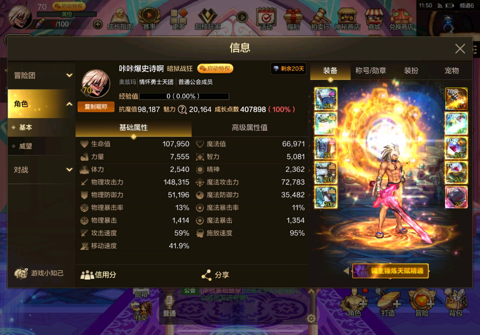C微信区:可二次实名 诺斯玛尔 狄瑞吉391 纯色天2 还有3千多点劵+58W泰拉可换奥兹玛宠物 至尊光环 3.54W抗魔3宝珠附魔狂战 全身强化20 属强6+5 完美细节地下城手游(国服) - 安卓微信 - 诺斯玛尔