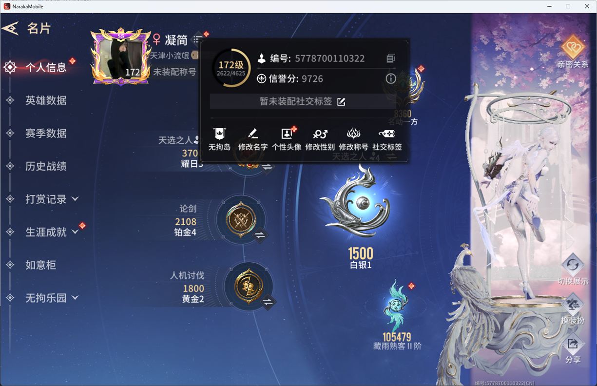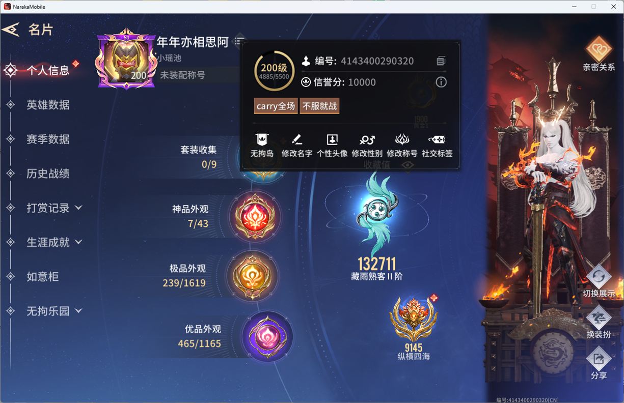 AK6020/网易手机手游/可换绑/四人段位永劫罗刹6/7红/297金/炽切/吉光羽/狼主/双虹龙/苍穹之光/初代玄女/戎金狼/熛怒炼火/过江龙/至纯/烛神令/白鹿/三更令/千堆雪/傲骨/逆逢/金刚心念/雪魅星尘/山风客/寒芷/雨弈山河/腓腓/活动中心手机绑定无法解绑/找回包赔/永劫无间手游 - 网易官服 -