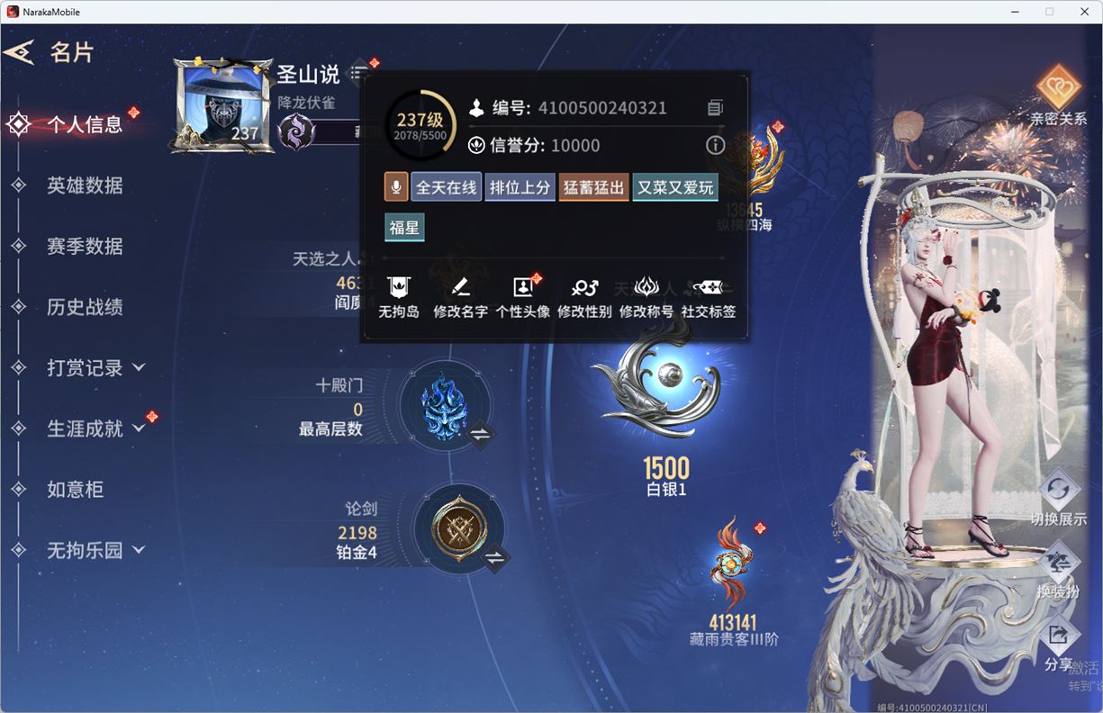 AK5949/网易手机手游/可换绑/四人段位黄金1/6红/197金/紫微剑/狼主/霜雪狐歌/初代玄女/熛怒炼火/鲤梦浮光/过江龙/白鹿/烛龙引/断月影/判官笔/必安/逆逢/龙息/戏祥云/醉山川/阴阳姬/山风客/怒浪/悠竹萌客/活动中心手机绑定无法解绑/找回包赔/永劫无间手游 - 网易官服 -
