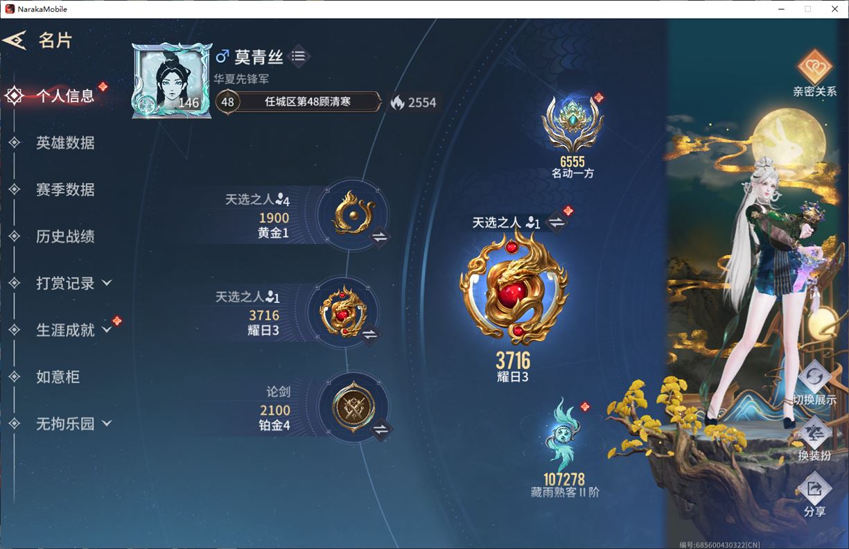 AK6065/网易手机/11月29可换绑/三人段位蚀月3/13红/398金/声望16/春木/神君印/炎烈珠/少阳剑/帝星/龙雀/飞将戟/狂龙/苍穹之光/赤皓新囍/化生明王/戎金狼/狱炎烬甲/人偶之梦/沙漠香风/墨离/过江龙/亢龙/毛乎乎/暝视/无韵/雷王锯/墨绒羽扇/逍遥/竹霹雳/迎宵/悠竹萌客/兰庭月/信手斩龙/晨风/伏波龙女/黄庭道/寒芷/祸津素盏/麟鹿大铠/玉叶景/浣烟纱/卷毛/极夜天曦/赤诚心/云间影/提步/男性发型14/活动中心手机绑定无法解绑/找回包赔/