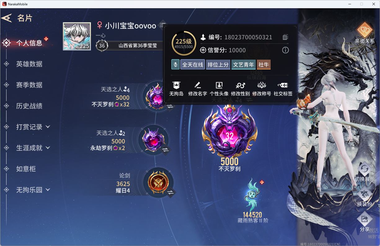 AK6020/网易手机手游/可换绑/四人段位永劫罗刹6/7红/297金/炽切/吉光羽/狼主/双虹龙/苍穹之光/初代玄女/戎金狼/熛怒炼火/过江龙/至纯/烛神令/白鹿/三更令/千堆雪/傲骨/逆逢/金刚心念/雪魅星尘/山风客/寒芷/雨弈山河/腓腓/活动中心手机绑定无法解绑/找回包赔/