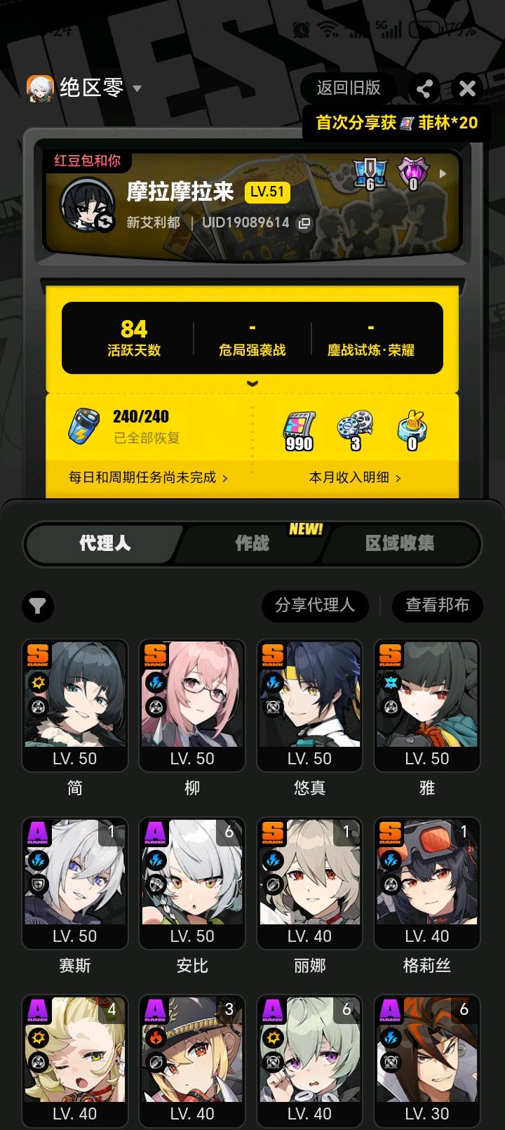 [代售]女主 邮箱未绑定 否 否 否 11号 格莉丝 丽娜 安比 苍角 妮可 可琳 比利 安东 本 露西 派派 嵌合编译器 绝区零一个退游号。很久没玩了。 角色如上。整体练度都有基础。可以组成两队。一对是已经完整的。 只收微信的。支付宝没有 价格在234。可以谈价绝区零 - 米哈游官服 -