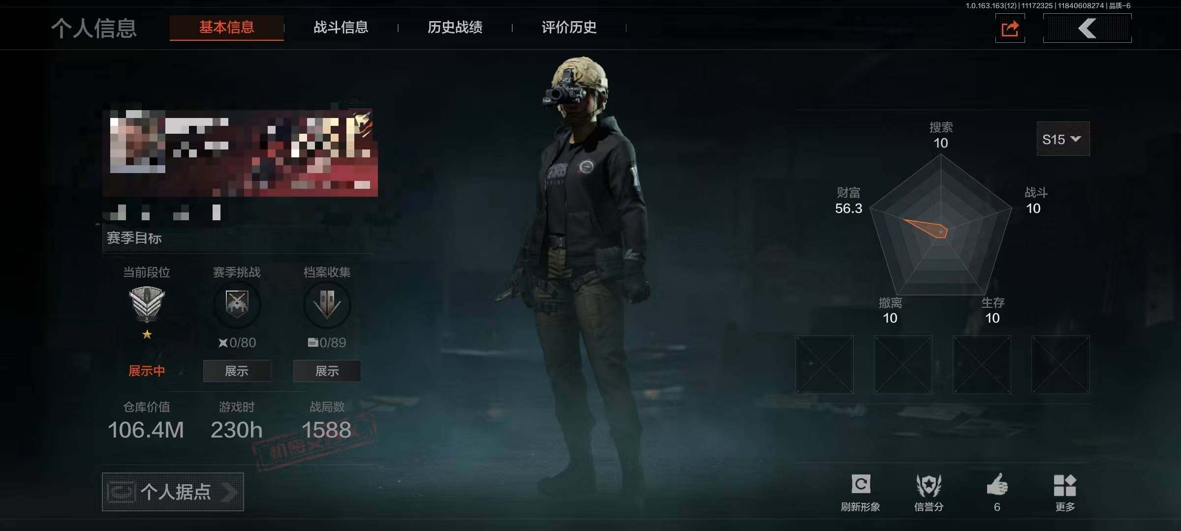 【AQZG475】等级:30/段位:尖兵/仓库价值(百万):106/柯恩币:37169398/工兵铲/野战折刀/竞技·FAL/旗帜·AEK/旧王圣谕·VSS