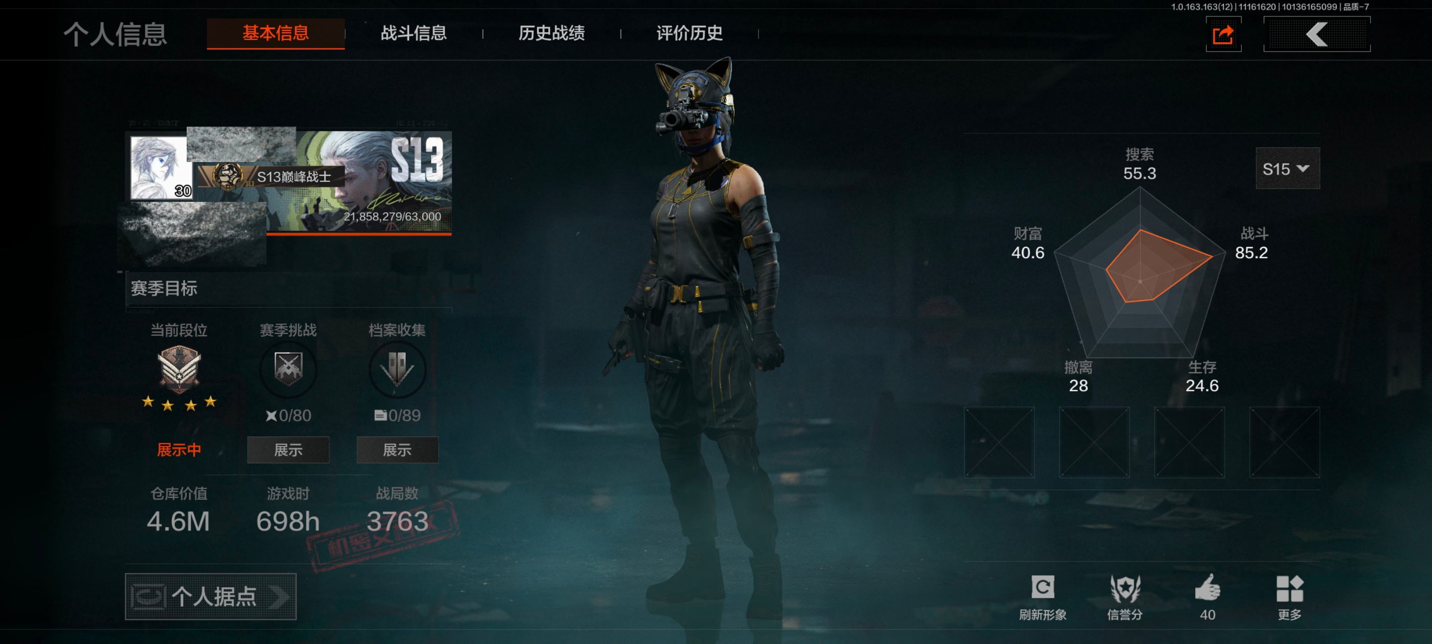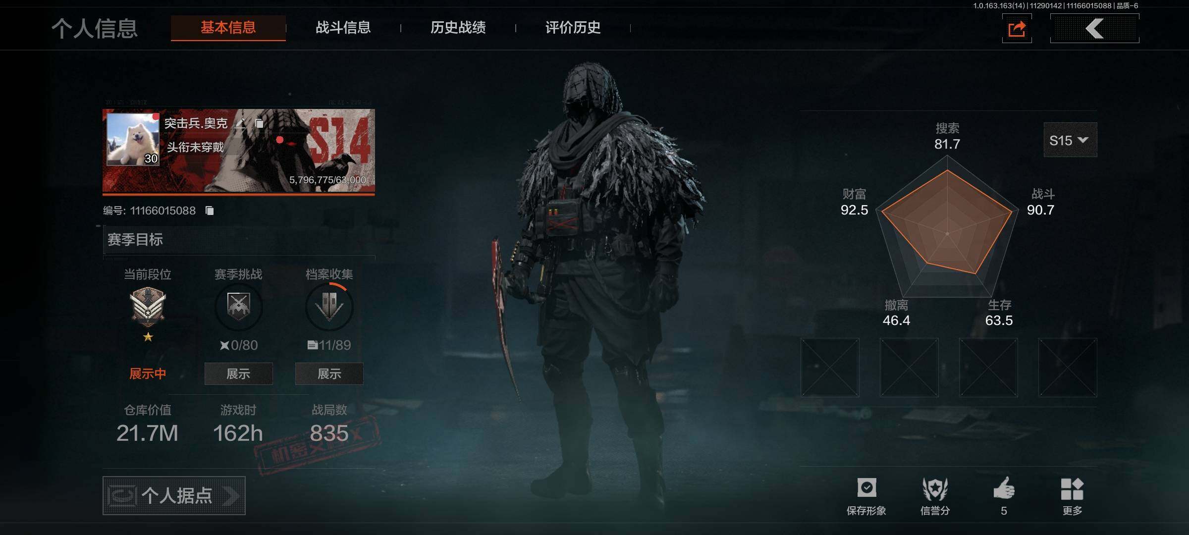 【AQZG556】等级:30/段位:暗区传说/仓库价值(百万):21.7/柯恩币:2250000/热能武器·补牢
