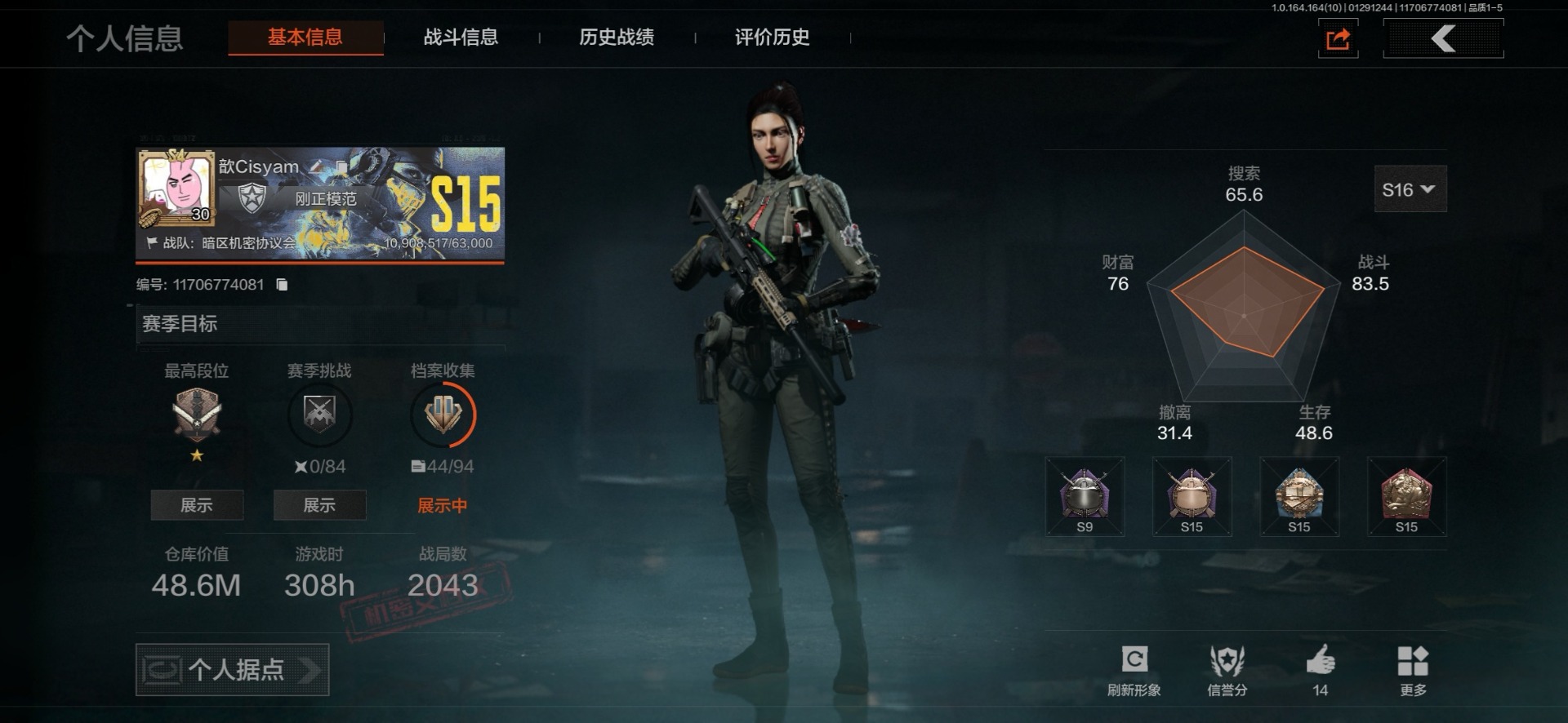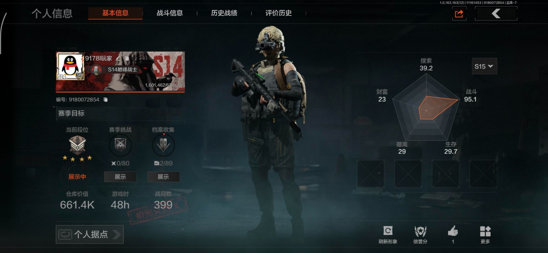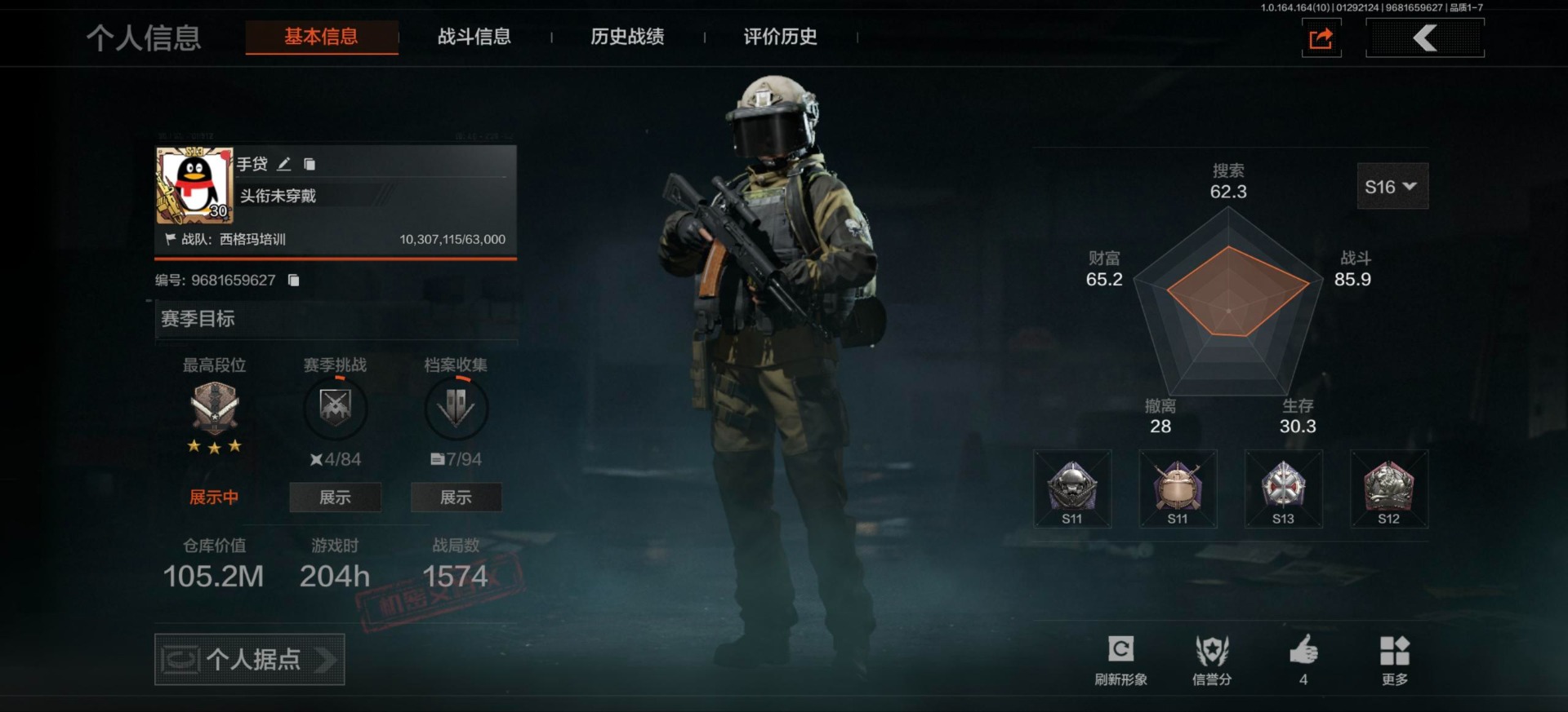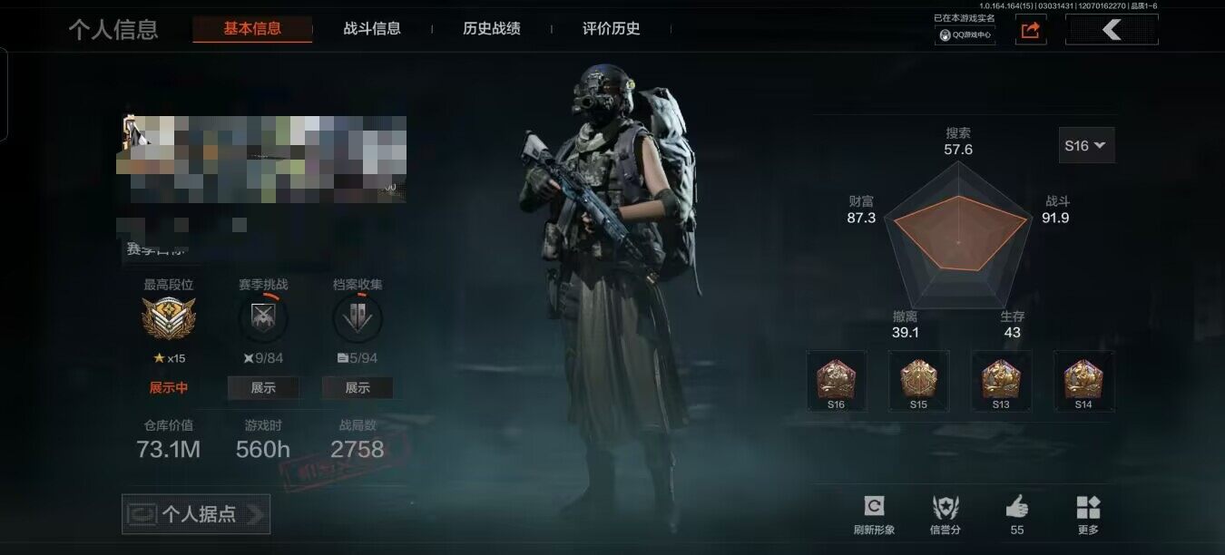 【AQZG627】等级:30/段位:新锐/仓库价值(百万):9.8/柯恩币:459747/明刀绣春暗区突围 - 安卓 -