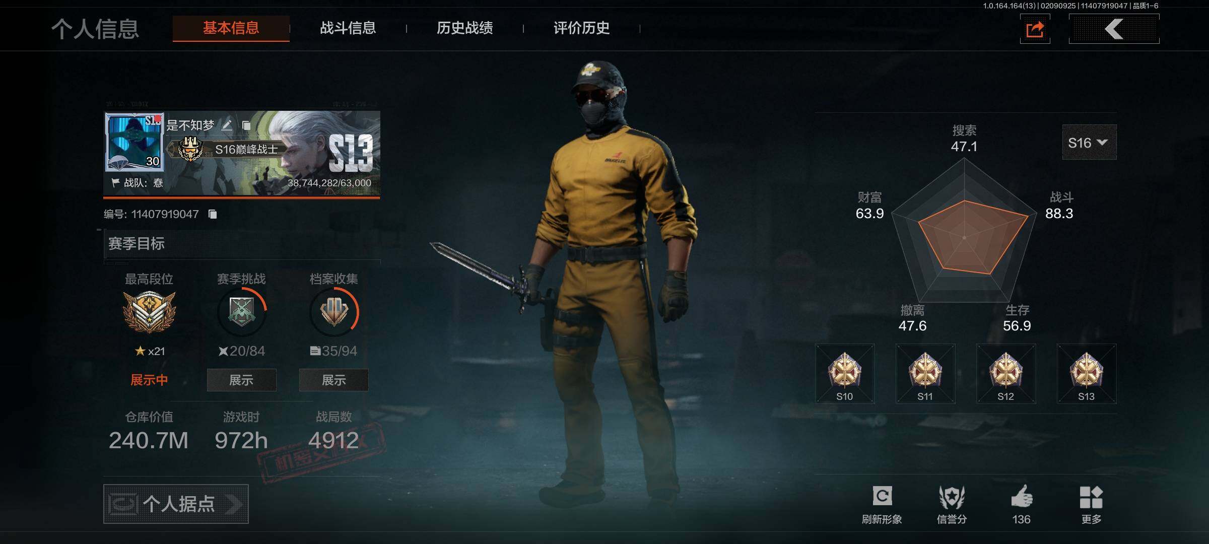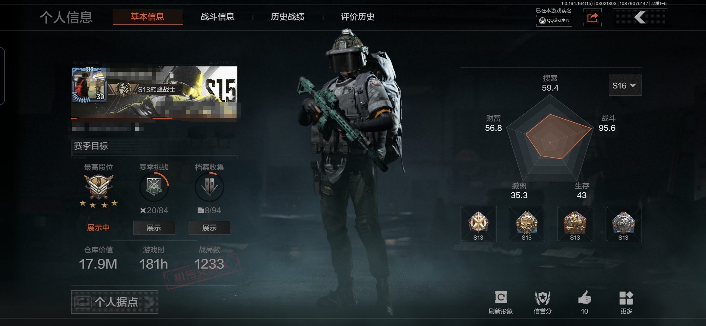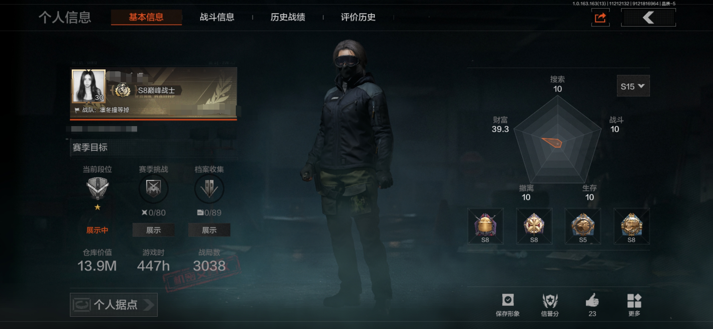 【AQZG627】等级:30/段位:新锐/仓库价值(百万):9.8/柯恩币:459747/明刀绣春暗区突围 - 安卓 -