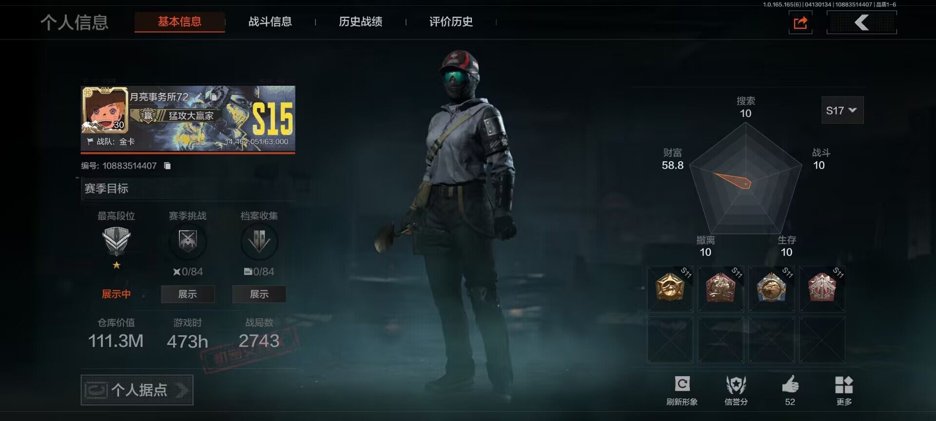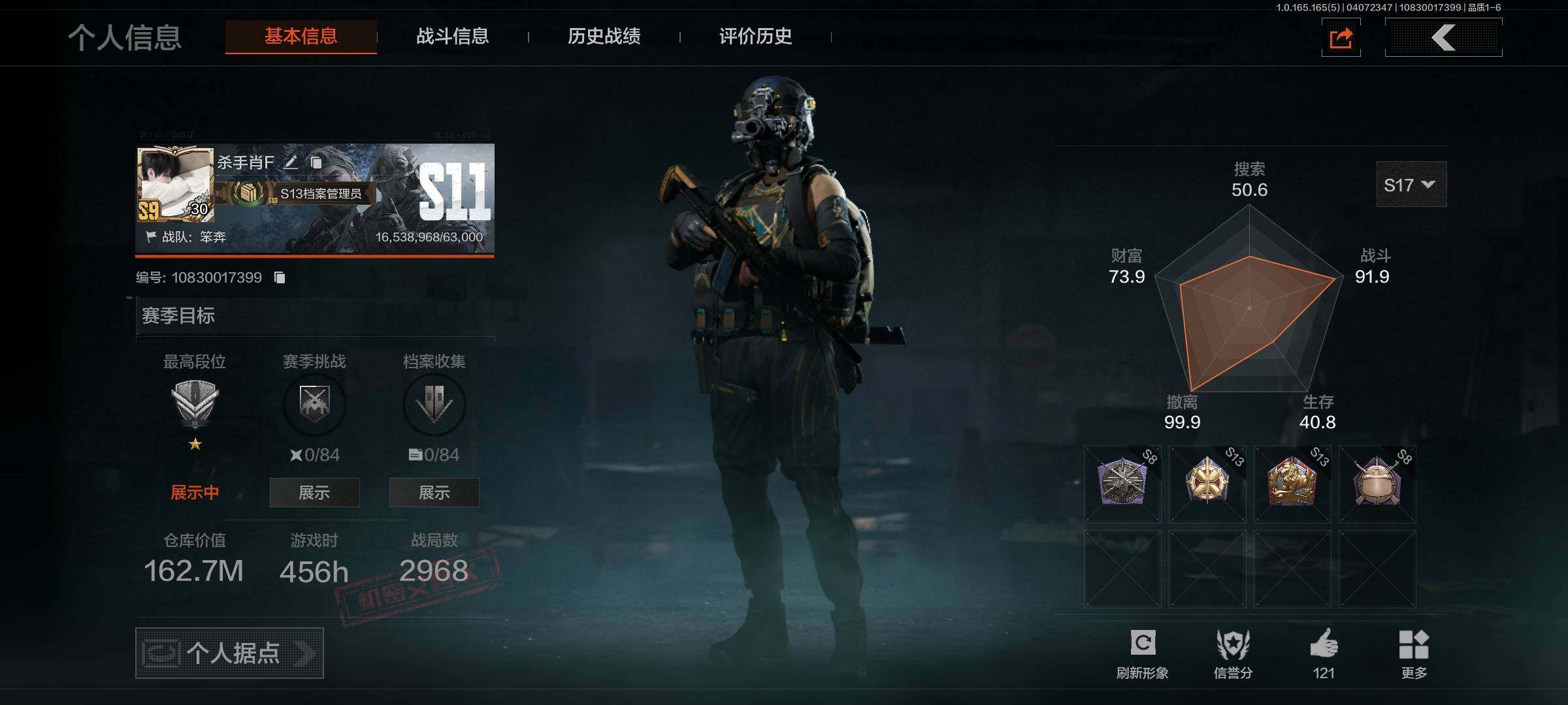 【AQQH1239】段位:新锐/仓库价值(百万):22/下弦月/工兵铲/空腔战术