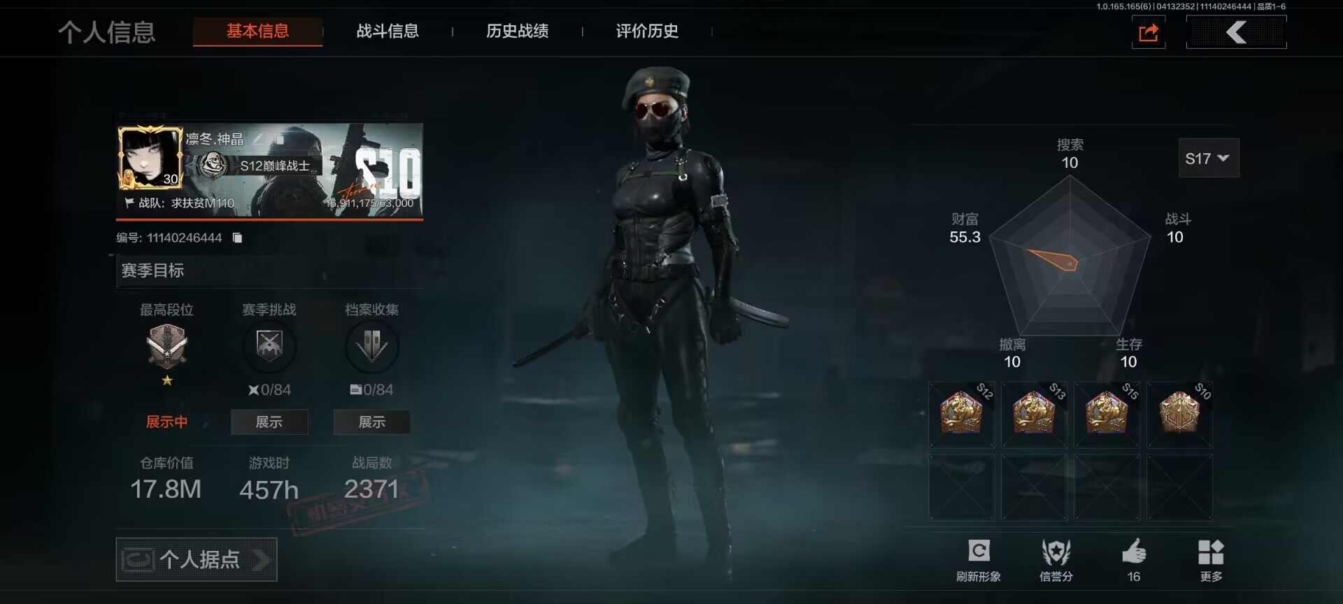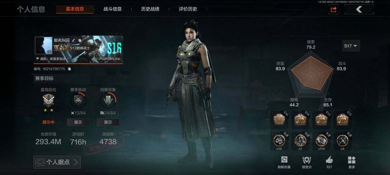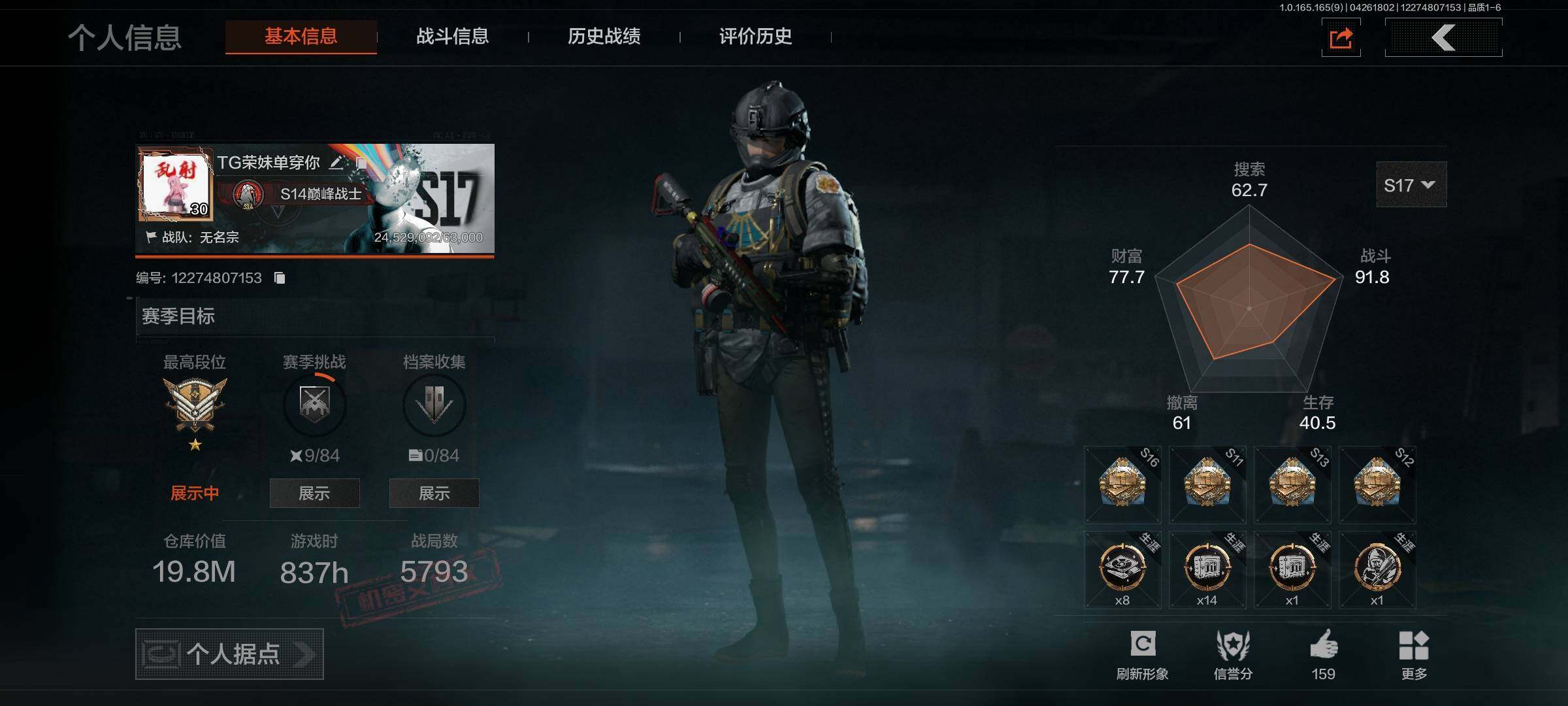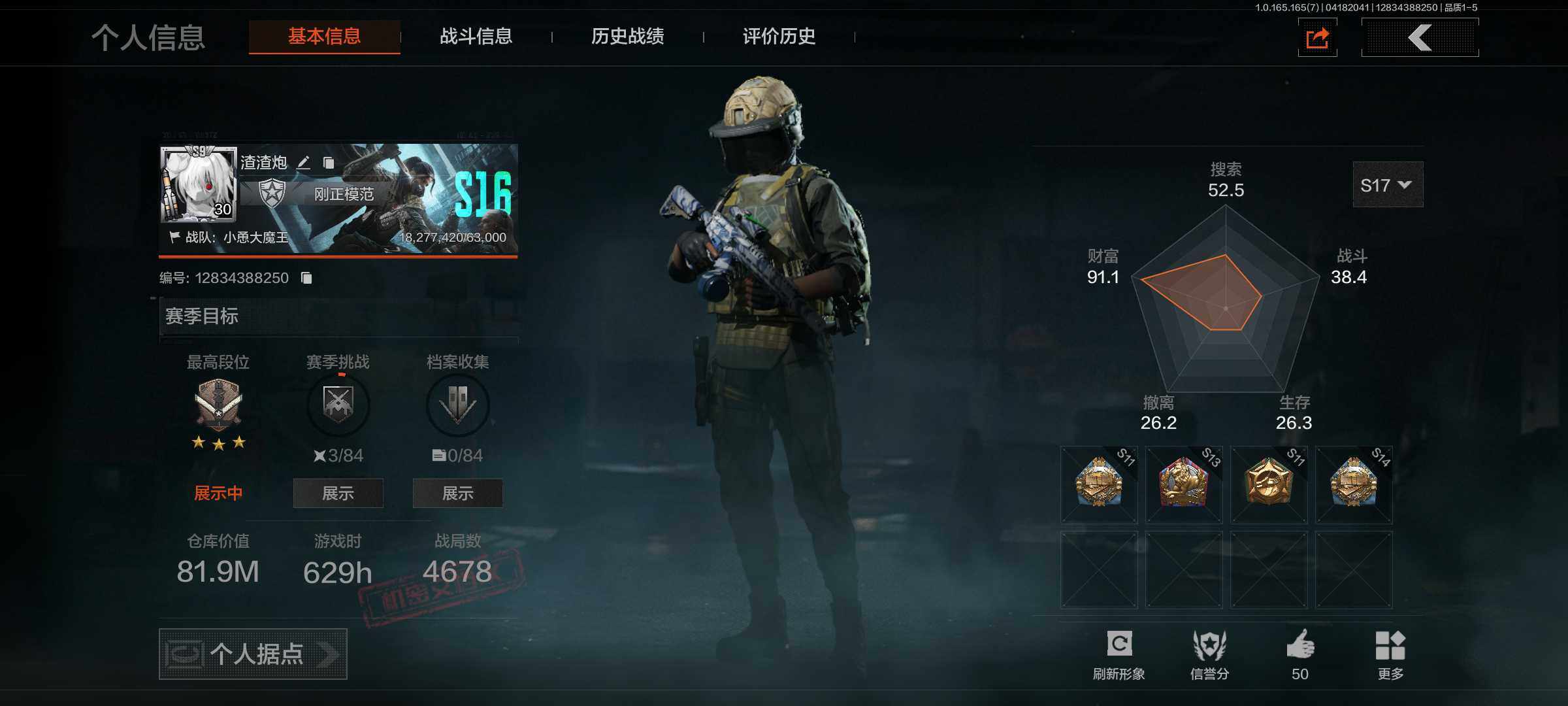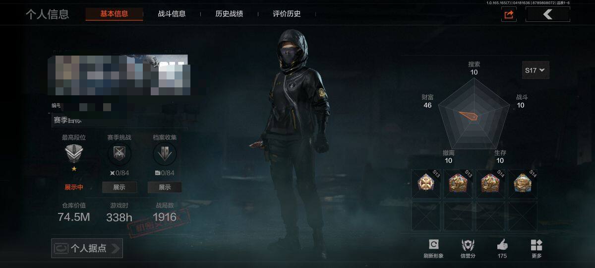 【AQD350】等级:30/段位:王牌/仓库价值(百万):252/柯恩币:143745/空腔战术/白蔷薇斯黛拉/套金客莫雷尔暗区突围 - 安卓 -