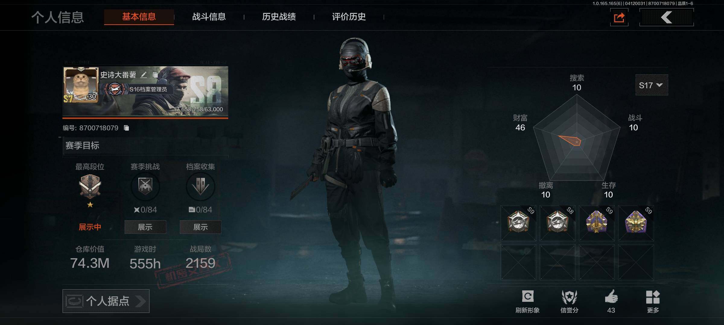 【AQZG2176】等级:30/段位:新锐/仓库价值(百万):43.2/柯恩币:33000000/赢家匕首/热能武器补牢/精英指虎/深潜行者II/冥河/钢铁壁垒作战服暗区突围 - 安卓 -