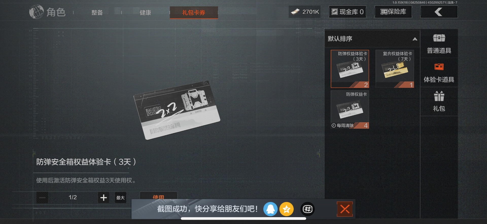 [13567335]库存价值84 2近战武器 2金枪皮 可修改实名 【柯恩币数量】:289343【近战武器】:工兵铲,野战折刀【金色枪皮】:旗帜·AEK,告丧夜曲·AR57【紫色枪皮】:旗帜·SVDS,正在骇入·Groza,竞技·MDR,竞技·AUG,竞技·M110,壁垒·RPK16,噤声者·莫辛【角色装扮(紫)】:都市夜影套装,鎏金街头套装暗区突围 - 安卓 -