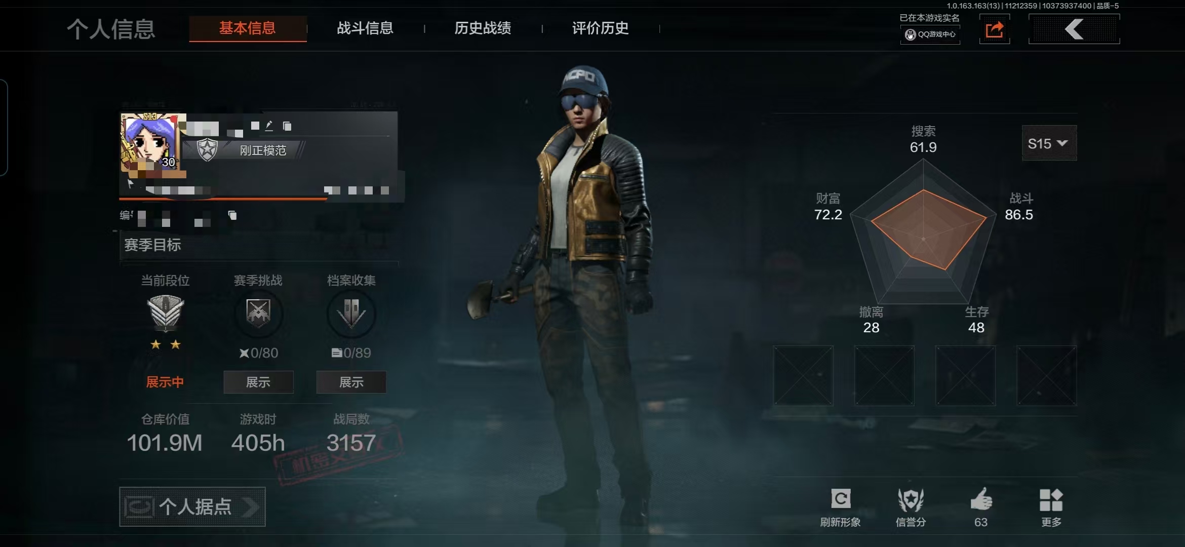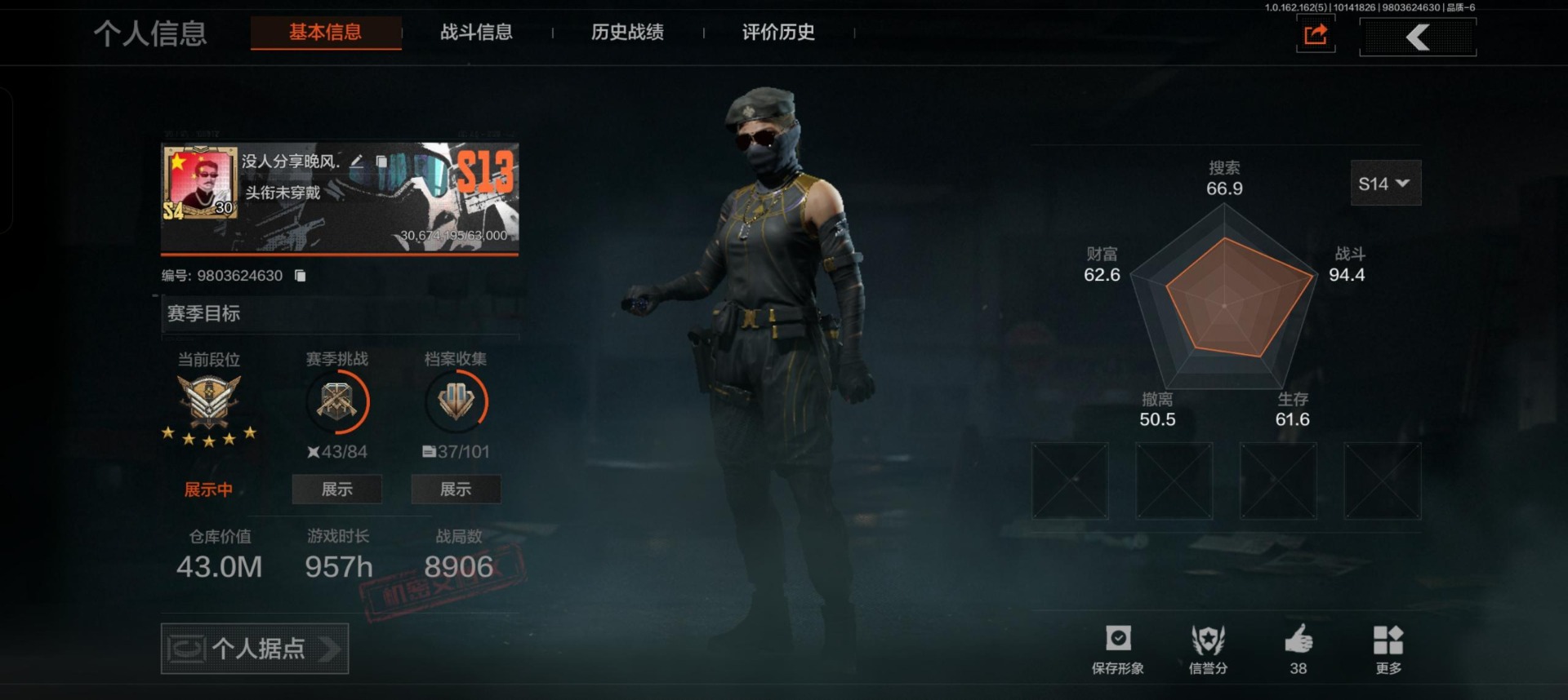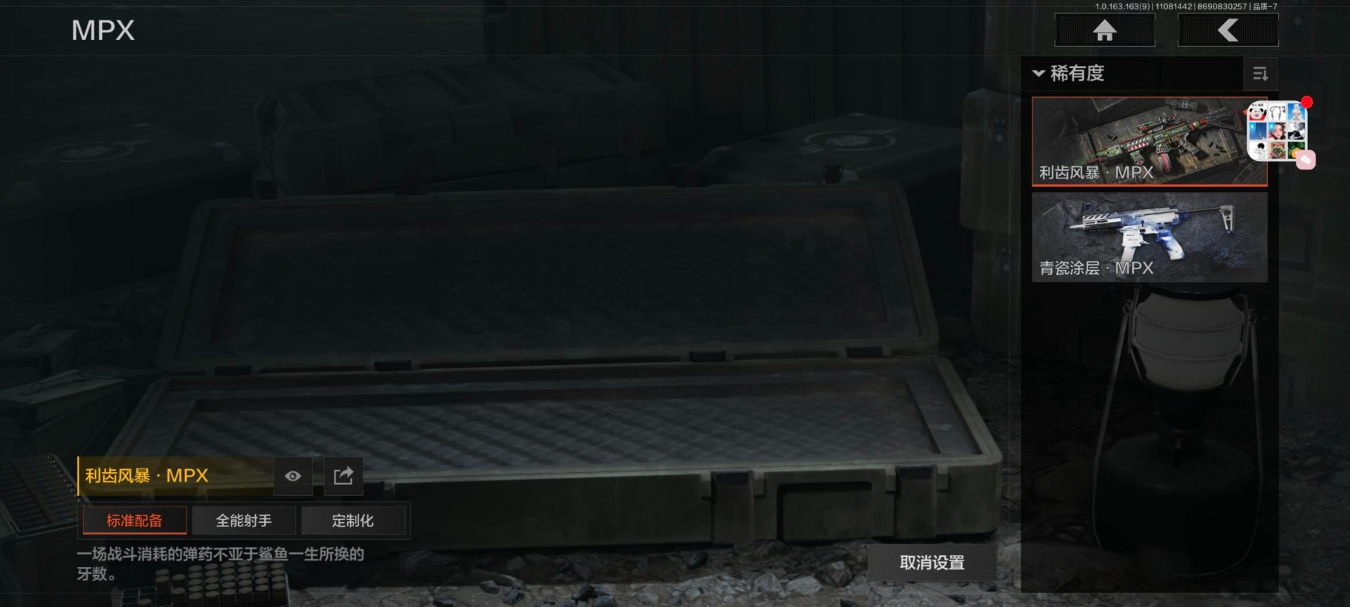 库存价值37.2 4近战武器 5金枪皮 可修改实名 【柯恩币数量】:5516【近战武器】:热能武器·补牢,赢家匕首,工兵铲,来战·开山刀【金色枪皮】:黄金·FAL,旗帜·AEK,棱光裂变·QBU191,钢铁真理·QBZ191,蓝色咆哮·H416【紫色枪皮】:武侍·SJ16,棱光裂变·ACE31,棱光裂变·AK102,棱光裂变·AKM,超越自我·Vector9,旗帜·SVDS,德尔塔小队·H416,赢家·F2000,饰金·AX50,自喷网格·H416,来战·AK74N,和平之手·FAL,禁止访问·UMP45,掌中盾·MP5,白色丧钟·莫辛暗区突围 - 安卓 -