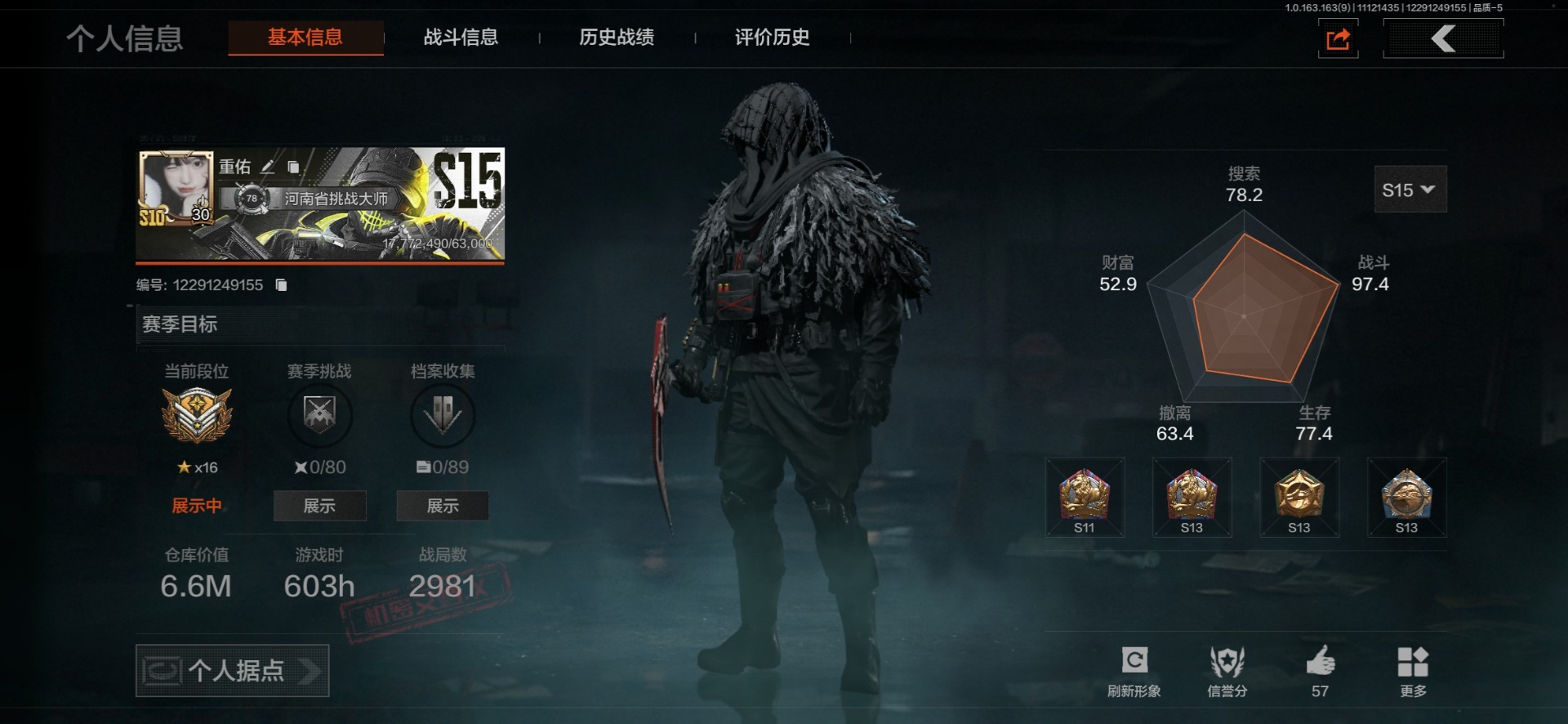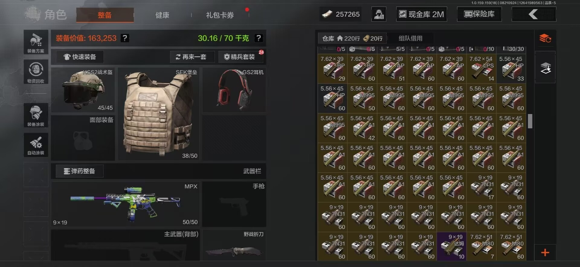 库存价值64.1 6近战武器 2金枪皮 可修改实名 【柯恩币数量】:257265 【近战武器】:热能武器·补牢,赢家匕首,工兵铲,来战·开山刀,涂鸦利刃,野战折刀 【金色枪皮】:旗帜·AEK,棱光裂变·QBU191 【紫色枪皮】:武侍·SJ16,棱光裂变·AK74N,棱光裂变·AKM,高塔之内·VSS,莫克斯·AKS74U,竞技·MDR,最后防线·AEK,炎夏浪花·H416,旗帜·SVDS,赢家·F2000,旗帜·RPK16,涂鸦·MPX,涂鸦·AK102 【角色装扮(紫)】:都市夜影套装暗区突围 - 安卓 -