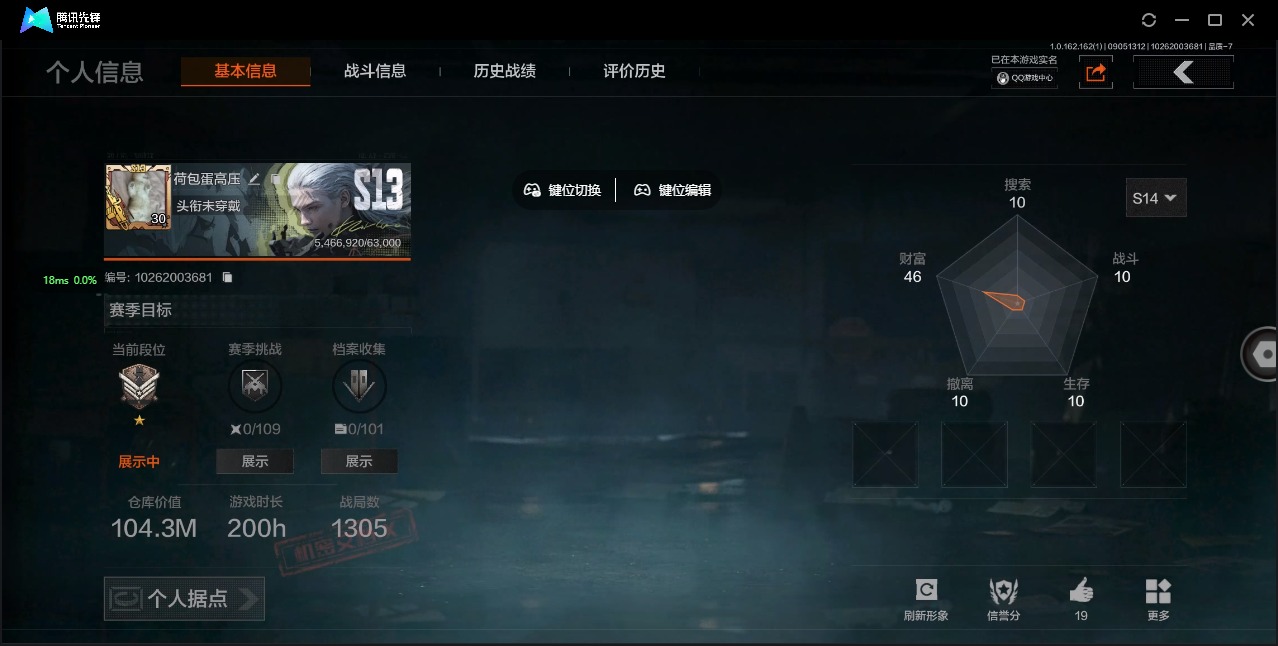 库存价值104.3 3近战武器 1金枪皮 可修改实名 【柯恩币数量】:3307【近战武器】:S-07折刀,赢家匕首,工兵铲【金色枪皮】:旗帜·AEK【紫色枪皮】:赢家·F2000,赢家·G18C,旗帜·SVDS,旗帜·RPK16,火力倾泻·AKM,火力倾泻·RPD,高塔之内·P90,无畏·USAS12,炎夏浪花·H416,和平之手·FAL,正在骇入·Groza,超越自我·Vector9,超越自我·AR30,竞技·M110,火绒草·AUG,雪山之王·MPX