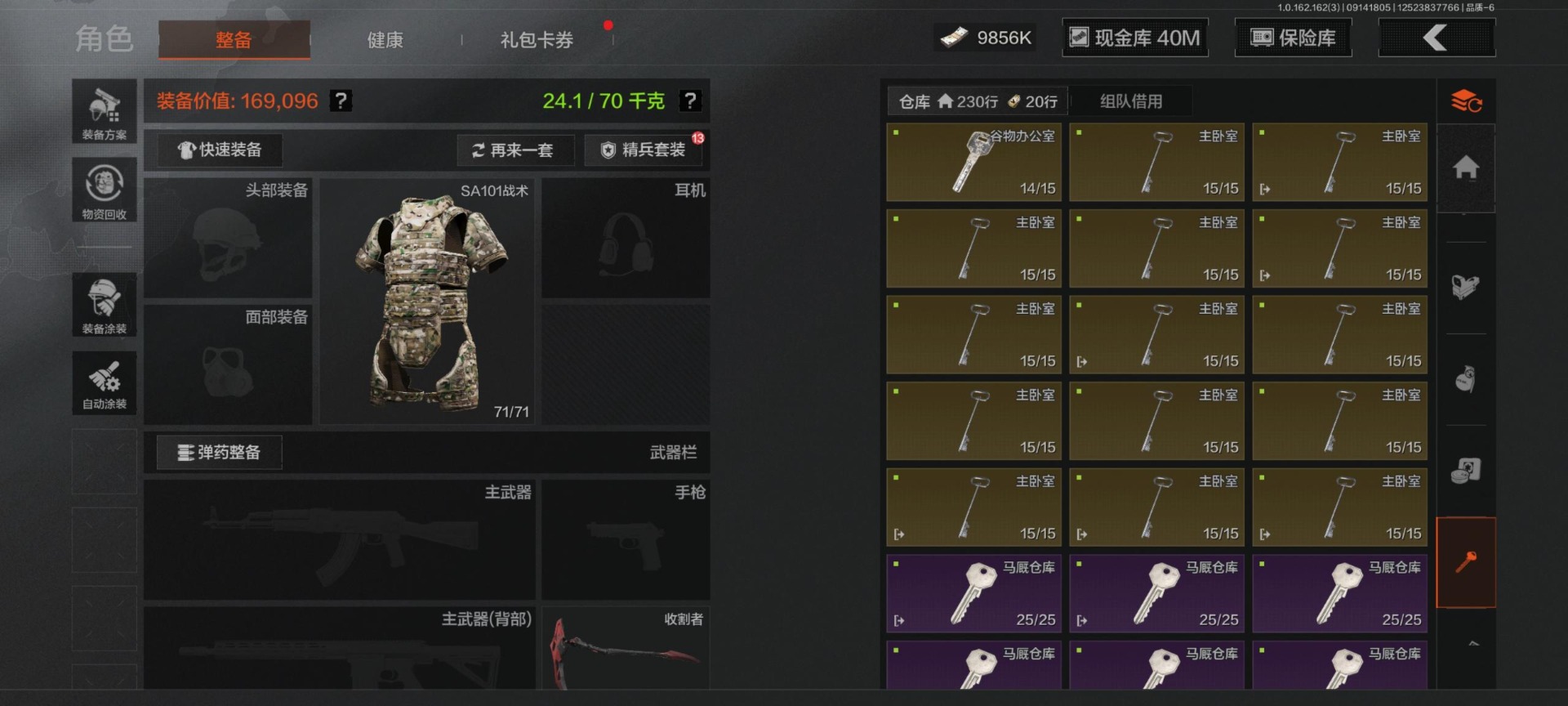 呀13:仓库价值:48.2M 2金枪27紫 工兵铲 开山刀暗区突围 - 安卓 -