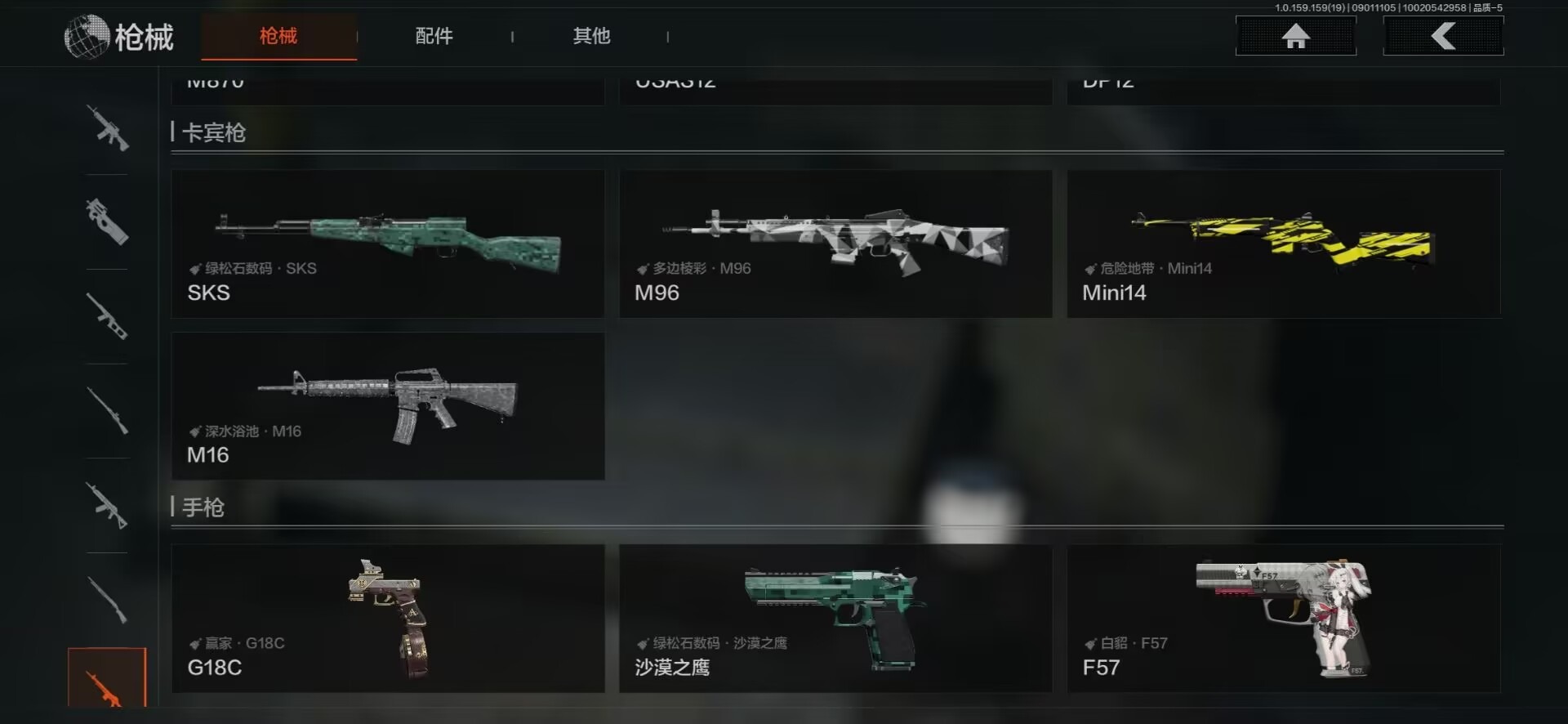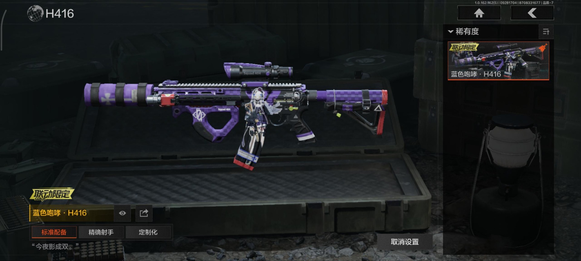 【枪皮】 诸星之子·FAL 堕落者·H416 蓝色咆哮·H416 告丧夜曲·AUG 告丧夜曲·AR57 旗帜·AEK 战术大师・AN94 浮鳞影青・QBZ192 旧王圣谕·VSS 骑士之剑·VSS 长缨风犁·AX50 长缨风掣·RPK16