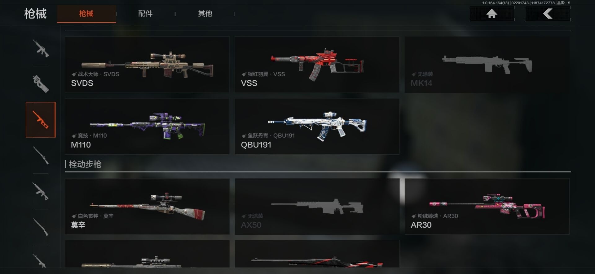 【金色枪皮】:浮鳞影青·QBZ192,旧王圣谕·QBZ191,旧王圣谕·VSS